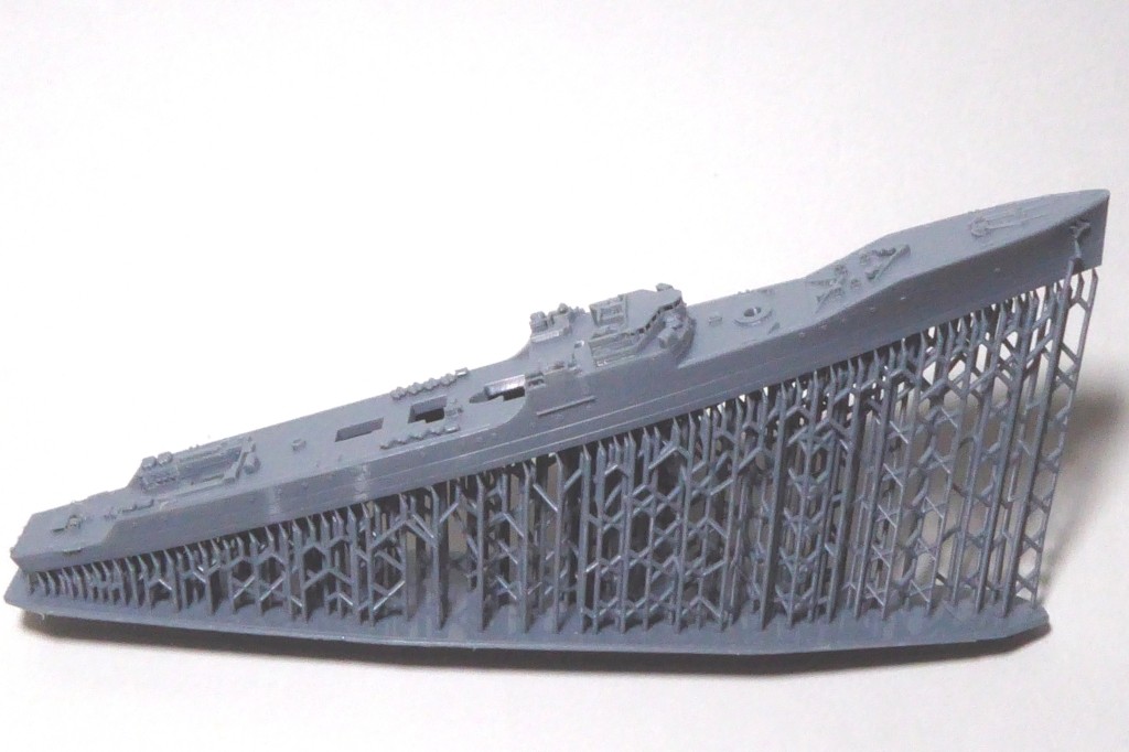 Der Rumpf ist mit seinen Kleinteilen und der Brücke an einem Stück gedruckt.