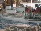 Das Modell der Olna wurde 2009 im Portsmouth Historic Dockyard fotografiert (teilweise ist auch ein Modell der Fregatte HMS Leander sichtbar, die nicht im Falklandkrieg eingesetzt wurde):
