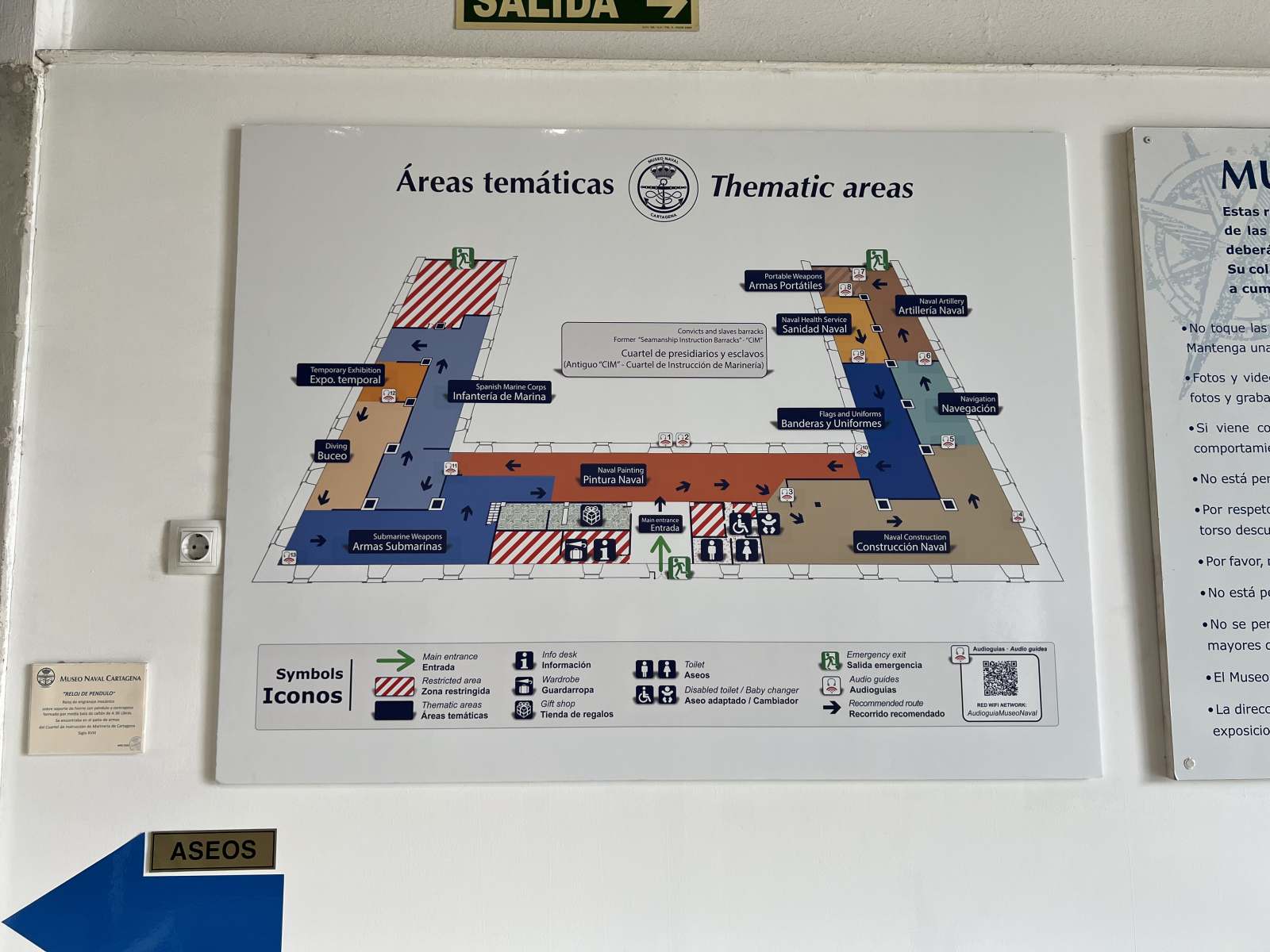 Es gibt in Spanien fünf Museo Naval (Marinemuseen), eines davon ist das Museo Naval de Cartagena . Es liegt in Cartagena bei einer der Marinehäfen (siehe Fotogalerie ) und widmet sich der Geschichte der spanischen Marine vom Mittelalter bis heute. Zahlreiche Modelle und einige Originalteile ausgestellt, das größte das spanische U-Boot Isaac Peral von 1889.