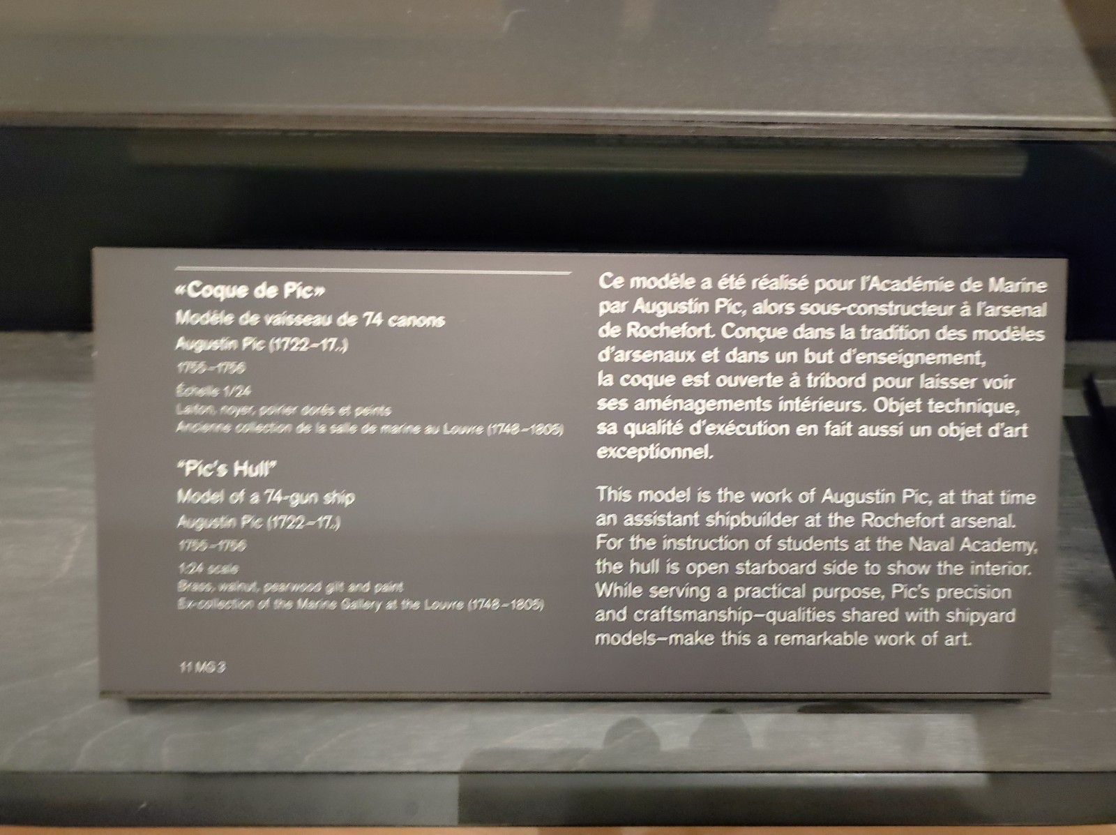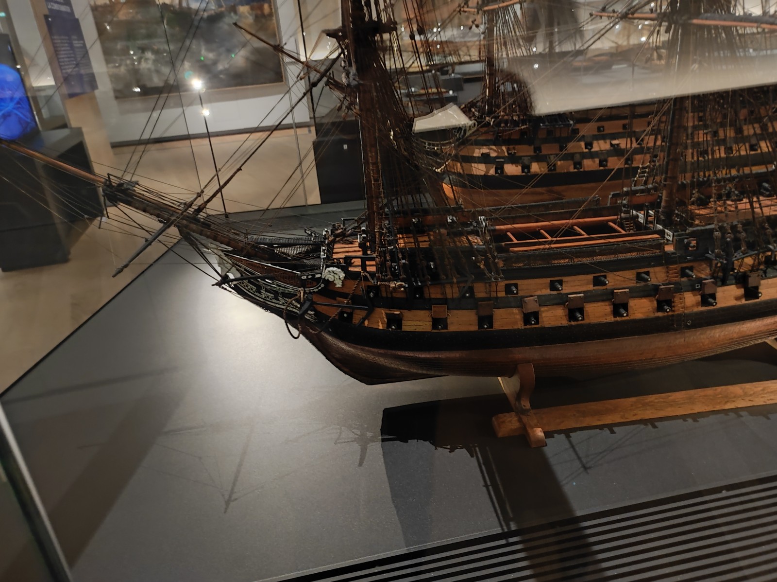 Gegenüber vom Eiffelturm, auf der andere Seite der Seine im Palais de Chaillot, ist das Musée national de la Marine de Paris untergebracht - der Hauptstandort der französischen Marinemuseen (die anderen Standorte sind Brest, Port-Louis, Rochefort und Toulon). Das Museum wurde 1827 gegründet und ist seit 1943 am heutigen Standort untergebracht. Das Museum wurde 2017-23 renoviert. Das Museum beherbergt immer noch eine große Sammlung von Schiffsmodellen, auch wenn diese früher größer war. In diesem Teil sind überwiegend Modelle von Segelkriegsschiffen sowie einige kleinere Modelle von Schiffen und Booten verschiedener Epochen zu sehen.