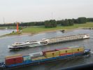 Auf dem Rhein kann man zahlreiche Containerschiffe beobachten, darunter auch Große Containerschiffe der Klasse VIb mit einer Länge von bis zu 135 m und noch längere Koppelverbände.
