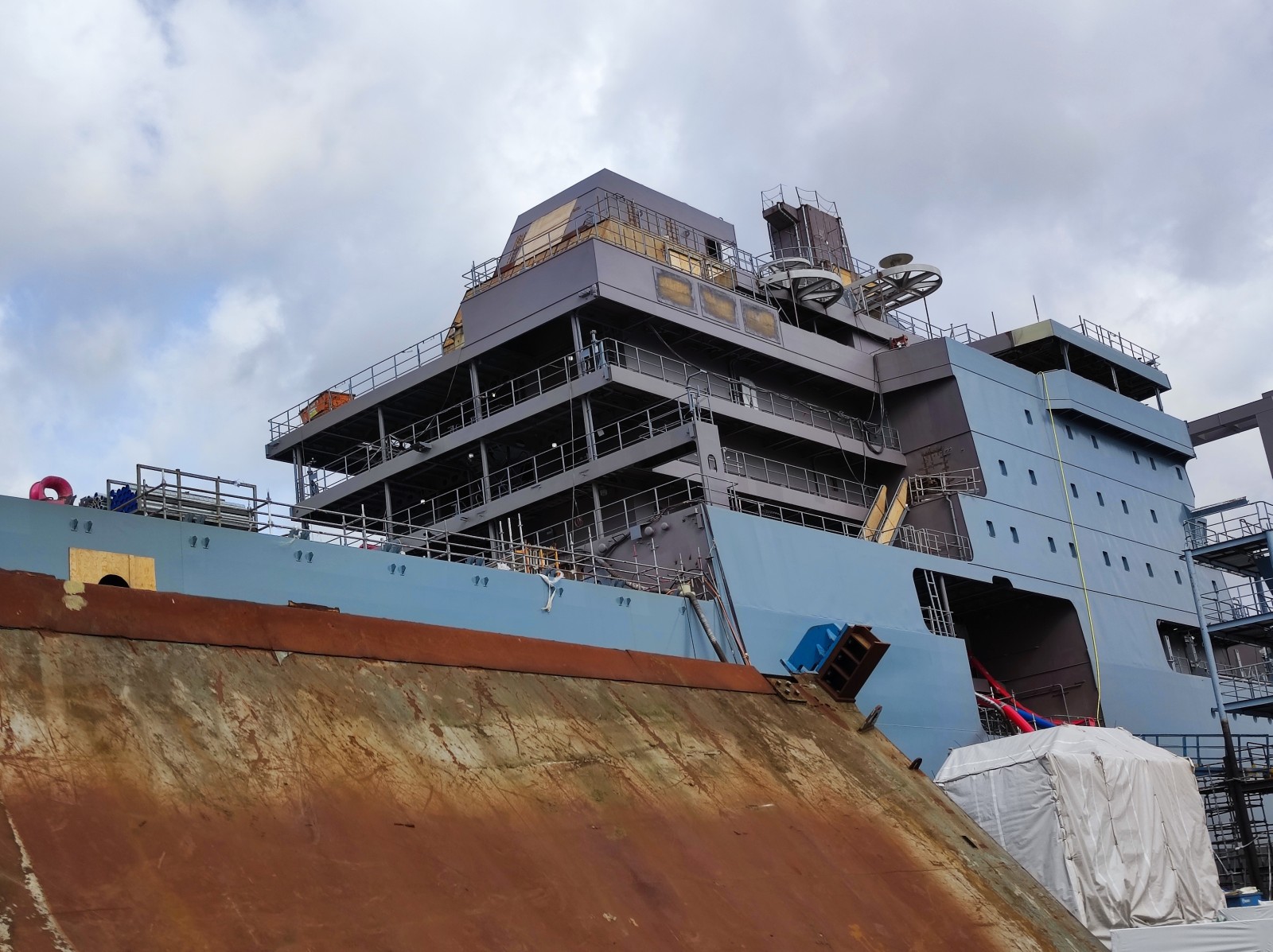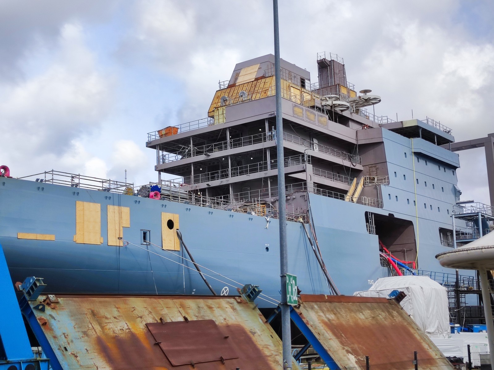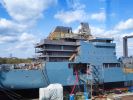 Das erste Schiff (A 1442) fotografierte ich im September 2024 auf der Warnow Werft (Marinearsenal) in Rostock (eventuell der Teil, der an die Meyer Werft verpachtet ist?) - damals war von dem Schiff nicht viel zu sehen, da es gerade lackiert wurde: