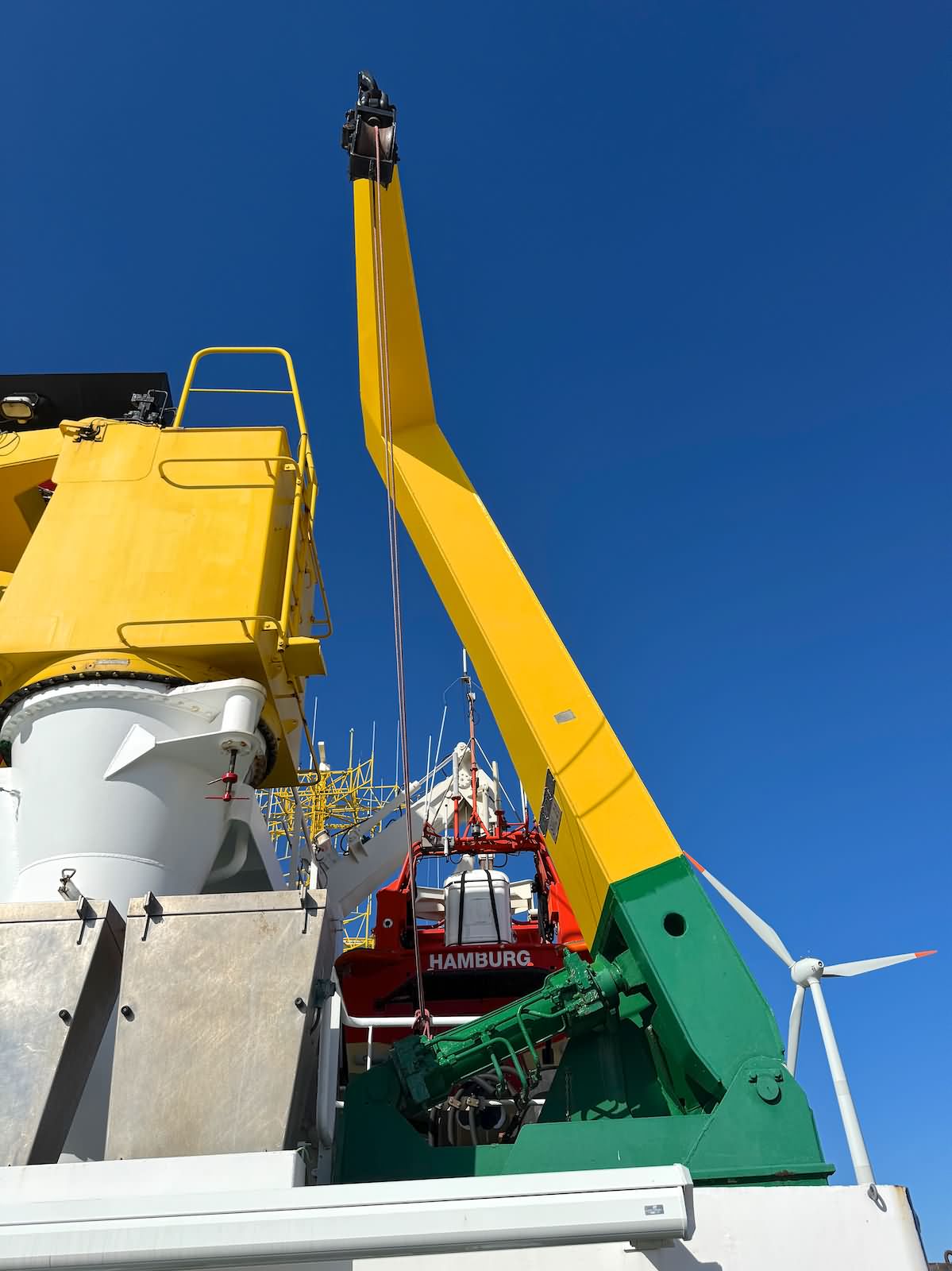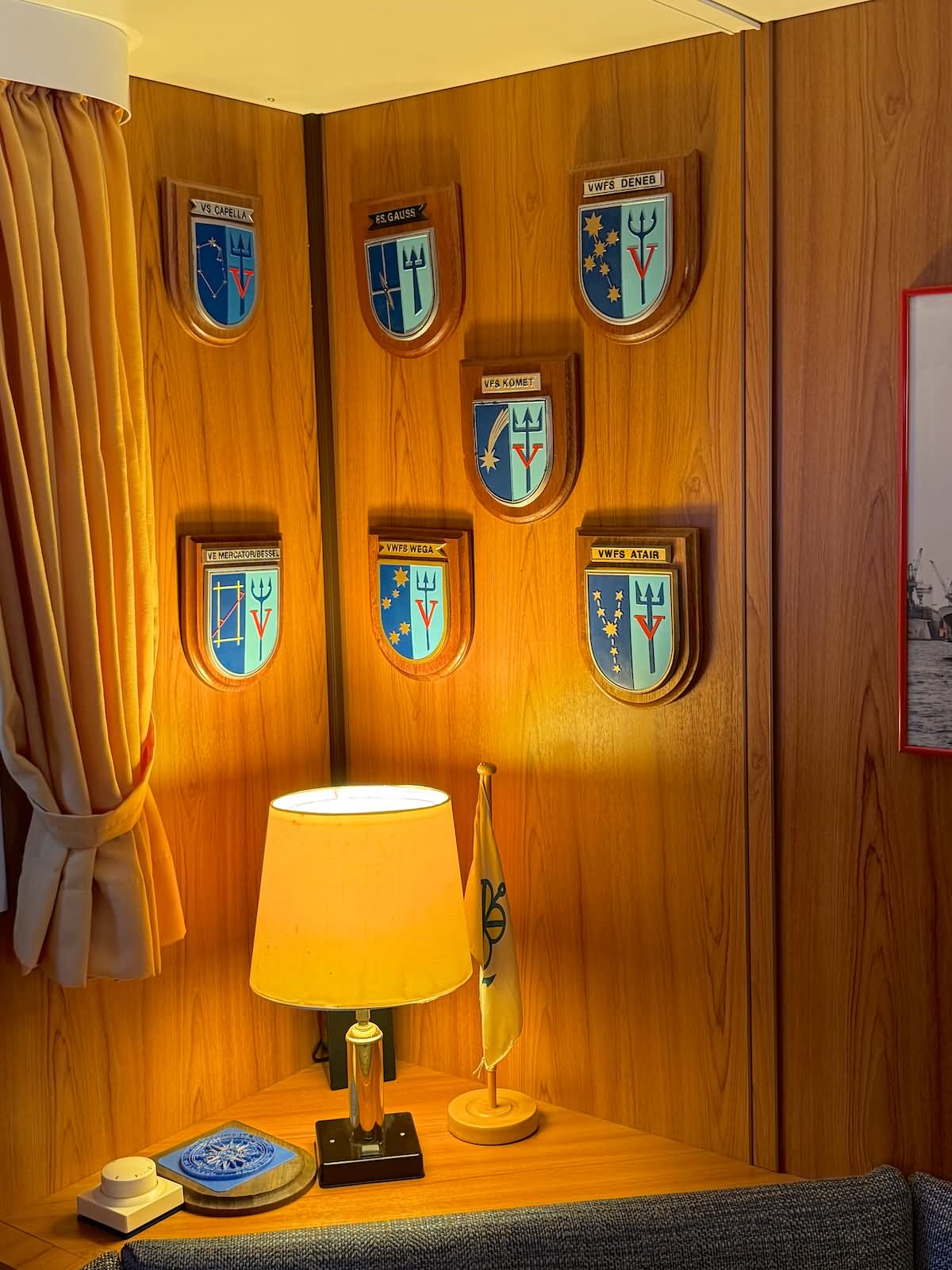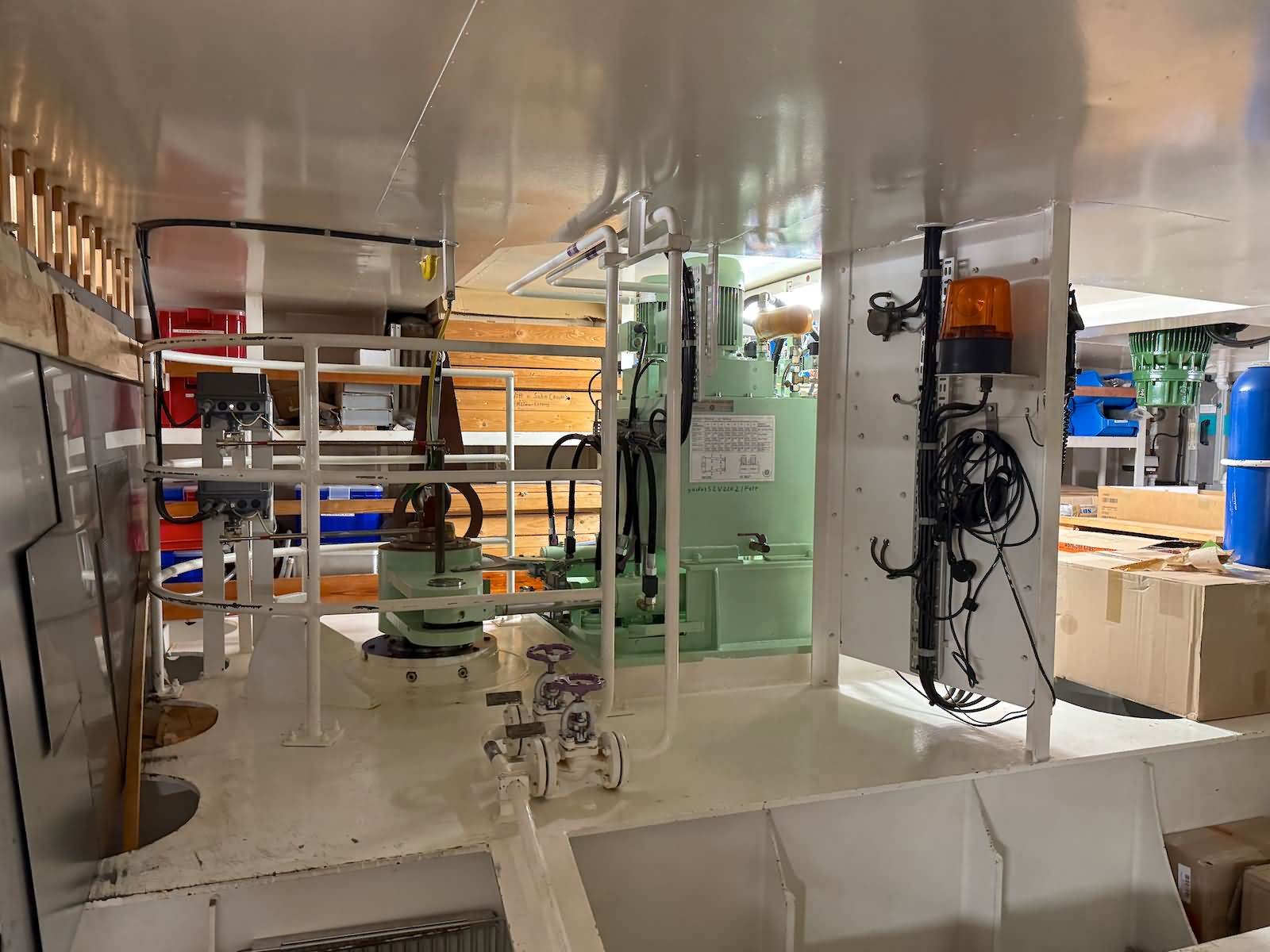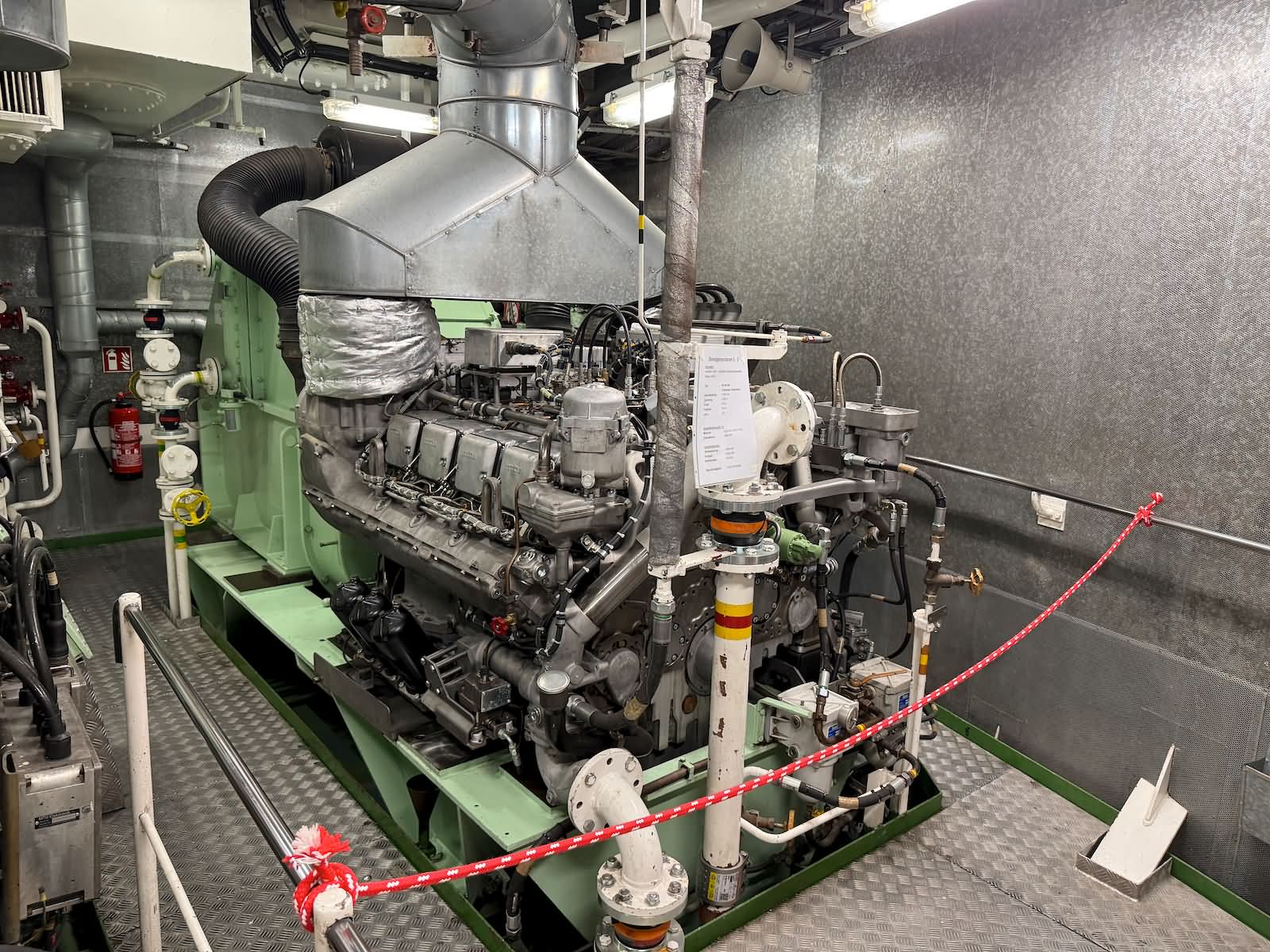Der Rundgang beginnt mit einer Außenansicht des Schiffes, bei der die Vermessungsboote gut zu erkennen sind: jeweils zwei an Steuerbord und Backbord sowie ein Schlauchboot an der achteren Position auf der Backbordseite. Anschließend führt der Weg zum Achterschiff, wo sich die Mehrzweckkräne in schwerer und leichter Ausführung befinden, ebenso eine Mehrzweckwinsch, eine Luke zum Maschinenraum für die Dieselaggregate sowie die Anlage zur Müllkompression. Von dort geht es entlang des Gangs auf der Backbordseite weiter in den Innenbereich zur Werkstatt. Im Maschinenraum sind einer der drei Dieselgeneratoren zur Stromversorgung, verschiedene Pumpen und Kompressoren sowie der elektrische Fahrmotor zu sehen. Direkt anschließend befindet sich der Maschinenfahrstand. Weiter führt der Rundgang in die Messe, die mit den Bordwappen der Vermessungsschiffe geschmückt ist. Danach gelangt man auf das Oberdeck an Steuerbord, wo sich ein weiteres Vermessungsboot sowie der Steuerbordgang befinden. Im Vorschiff sind eine Luke zur Schottel-Anlage sowie eine Winsch untergebracht. Auf der Brücke befinden sich der Fahrstand und die Steuerung der Schottel-Anlage. Die Komet ist mit einem Schottel-Pumpjet im Vorschiff ausgestattet. Zudem ist der Rumpf so konstruiert, dass das Schiff trockenfallen kann. Im weiteren Verlauf werden Details der Vermessungsboote gezeigt, darunter Antennen, Kräne und weitere Ausrüstung. Auch das Schlauchboot auf der achteren Backbordseite wird näher betrachtet; es wird durch einen Waterjet angetrieben. Abschließend folgen Außenaufnahmen der Backbordseite. Ein Bild ist zwar unscharf, aber dennoch aufschlussreich: Auf Höhe der Brücke an Steuerbord befindet sich ein ausklappbarer Galgen, mit dem eine Unterwasserschallsonde ausgebracht werden kann. Diese wird bis zum Meeresboden abgelassen, um anhand der Laufzeiten durch unterschiedliche Dichteschichten eine Kalibrierung vorzunehmen, was letztlich die Genauigkeit der Messergebnisse verbessert.
