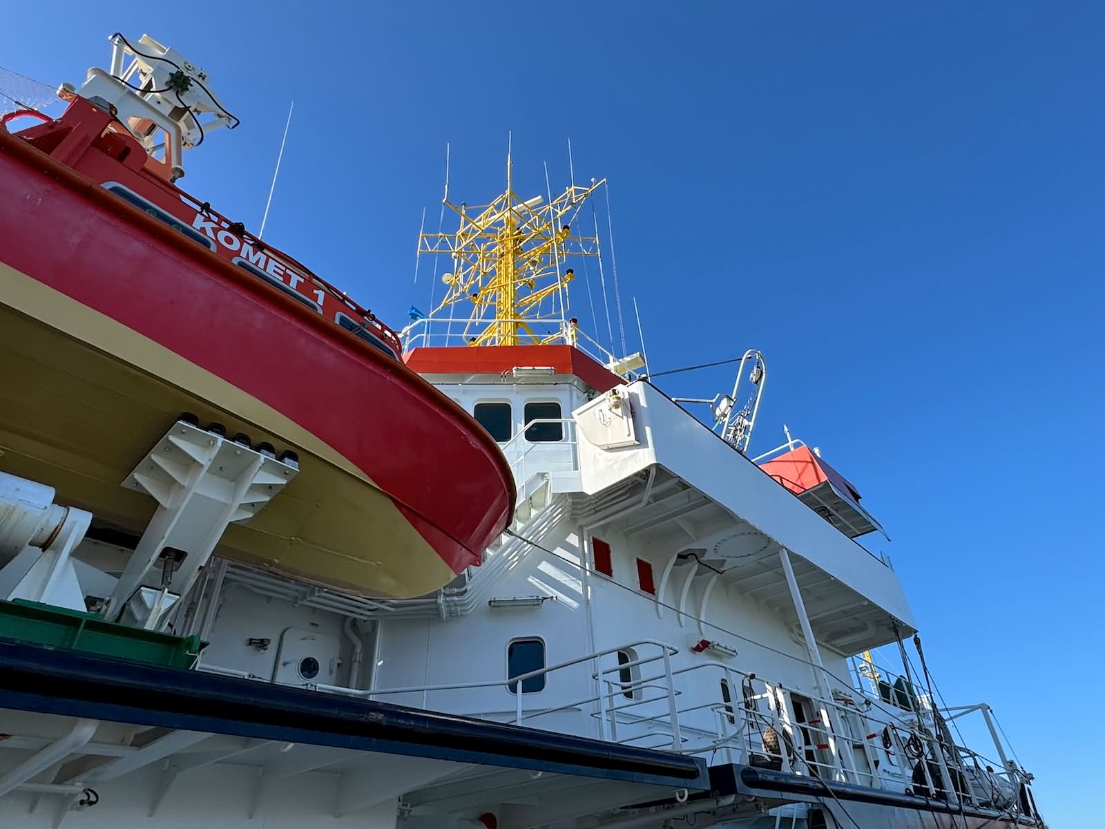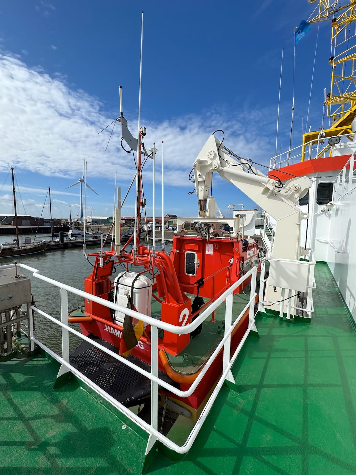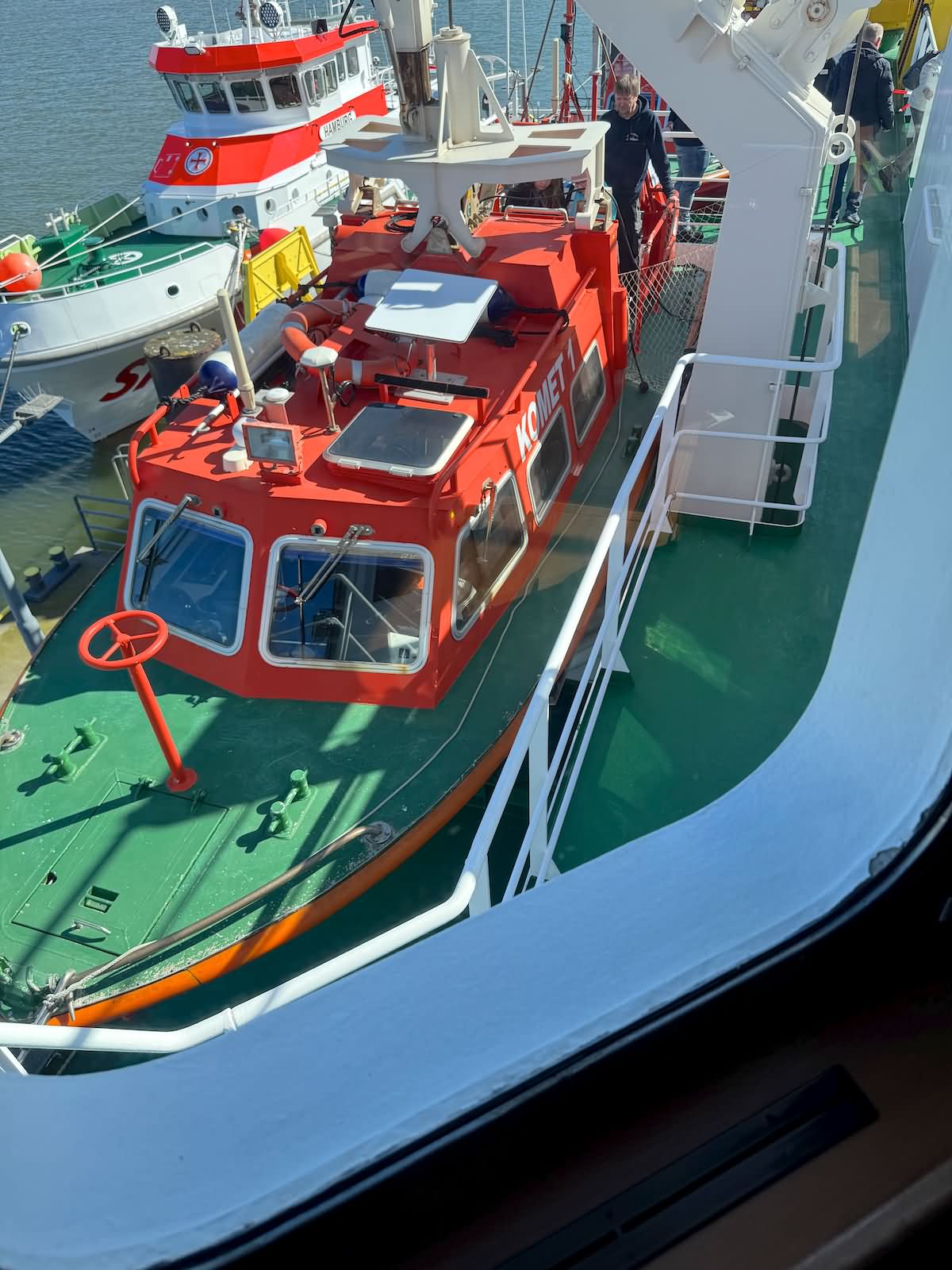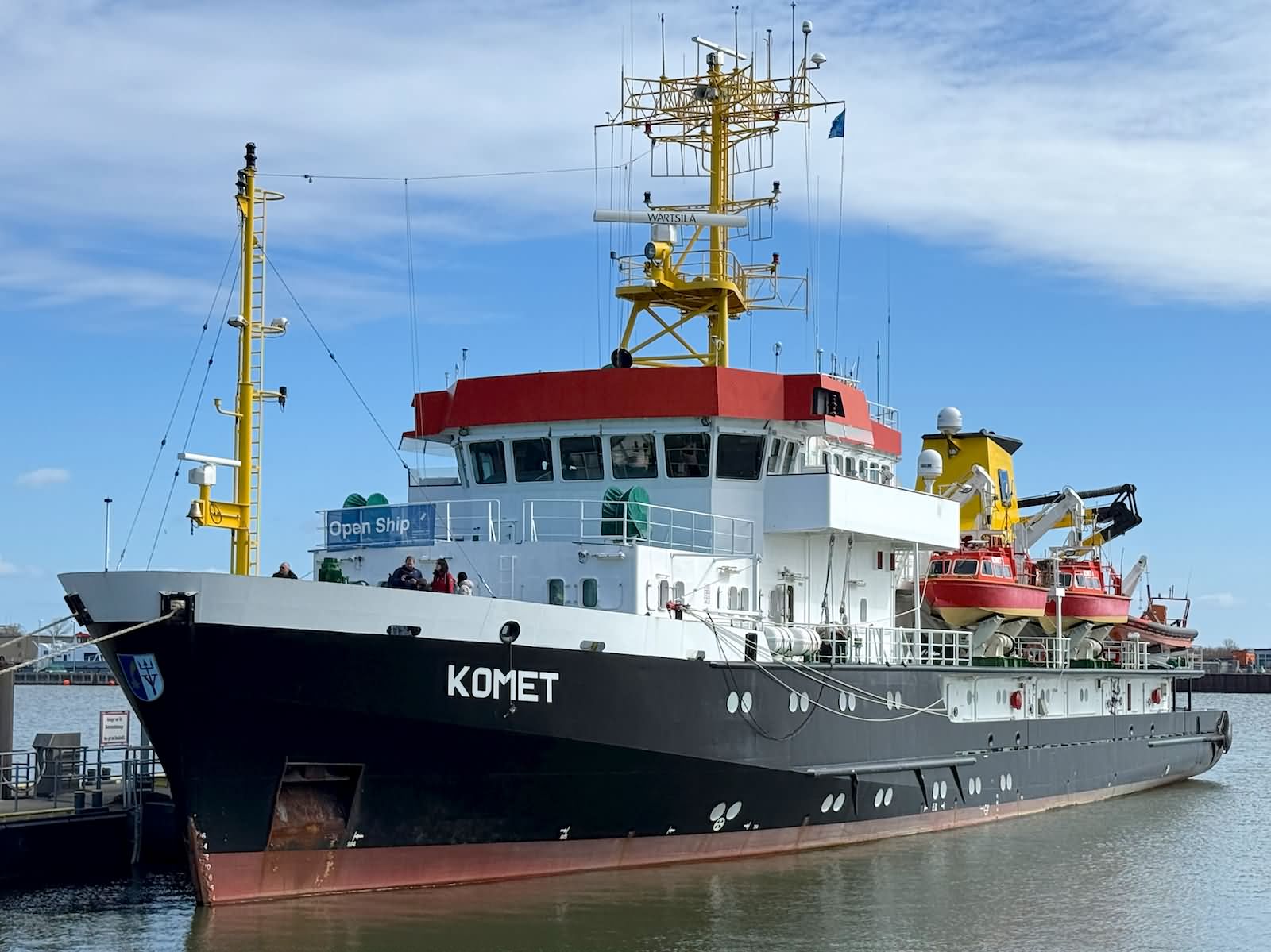 Komet konnte im April 2026 im Borkumer Hafen im Rahmen eines Open Schiffs besichtigt werden. Daneben lag der Seenotrettungskreuzer Hamburg und in der Nähe das Crew Transfer und Service Vessel (CTSV) Windea Three.