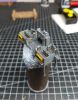 Das Modell des Schlachtschiffs Bismarck wurde aus dem Bausatz von Trumpeter im Maßstab 1/200 gebaut und u.a. mit dem Pontos Detail Up Set "Advanced", diversen Veteran Models-Teilen, anderen Teilen aus dem Zubehörmarkt sowie selbst aus Polystyrenprofilen gebauten Teilen verfeinert. Die Brücke, die aus dem Kasten gebaut relativ nackig wäre, wurde fast komplett neu gebaut. Die Persenning wurde aus Taschentuch, Holzleim und Styrenprofilen dargestellt.