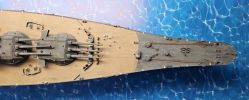 Vorn sind an den Wellenbrechern Stäbe befestigt, vielleicht zur Reinigen der Geschützrohre. Diese sind als Metallstäbe ergänzt und noch zu verkleben.