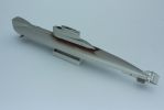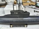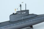 Mit 40 Bauteilen ist der Bausatz überschaubar. Mein Bausatz ist aus grauem, der eines Freundes aus braunem Kunststoff. Mir ist ein Fehler bei den beiden Tiefenrudern am Bug unterlaufen. Das eine hat die Form zum Abtauchen und das andere zum Auftauchen. Das Backbordruder ist nach unten gewölbt (Auftauchen) und das Steuerbordruder nach oben gewölbt (Abtauchen). Ich habe beide im ausgefahrenen Zustand verklebt.