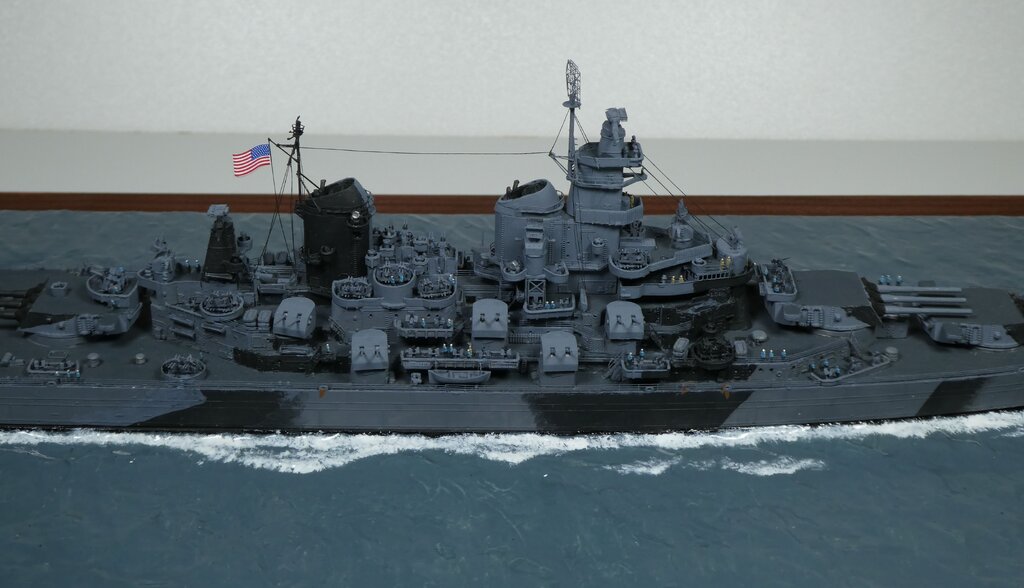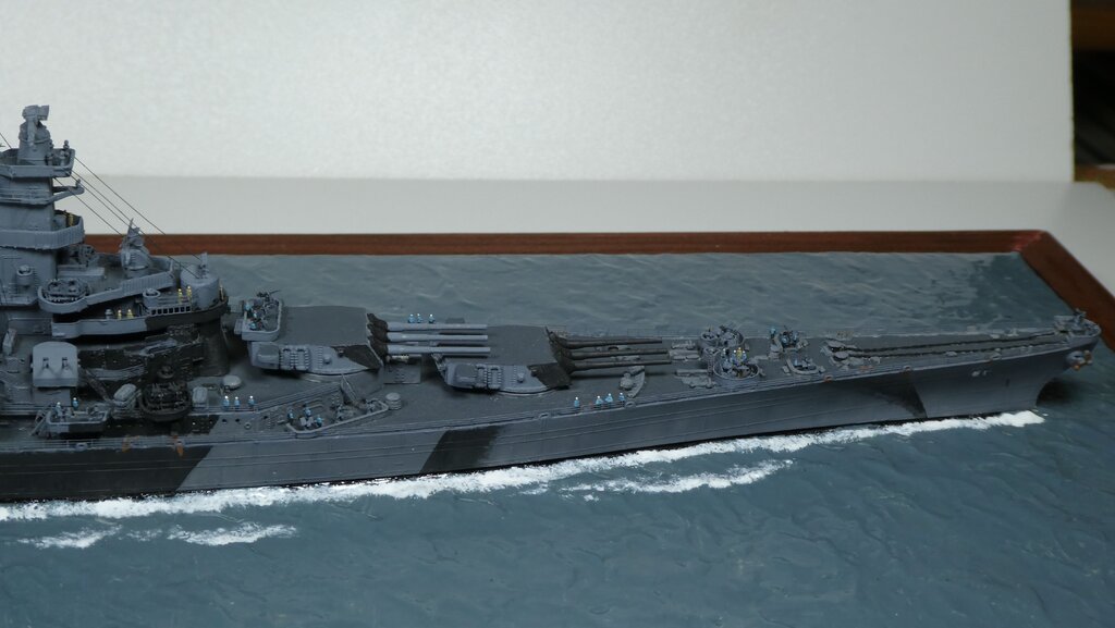 Das Modell stellt das amerikanische Schlachtschiff USS Iowa im Bauzustand Anfang 1944 dar.