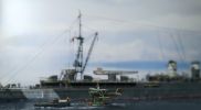 Zuletzt wurden noch Bordflugzeug und Zug-Barkasse gebaut, welche das Diorama ergänzen.