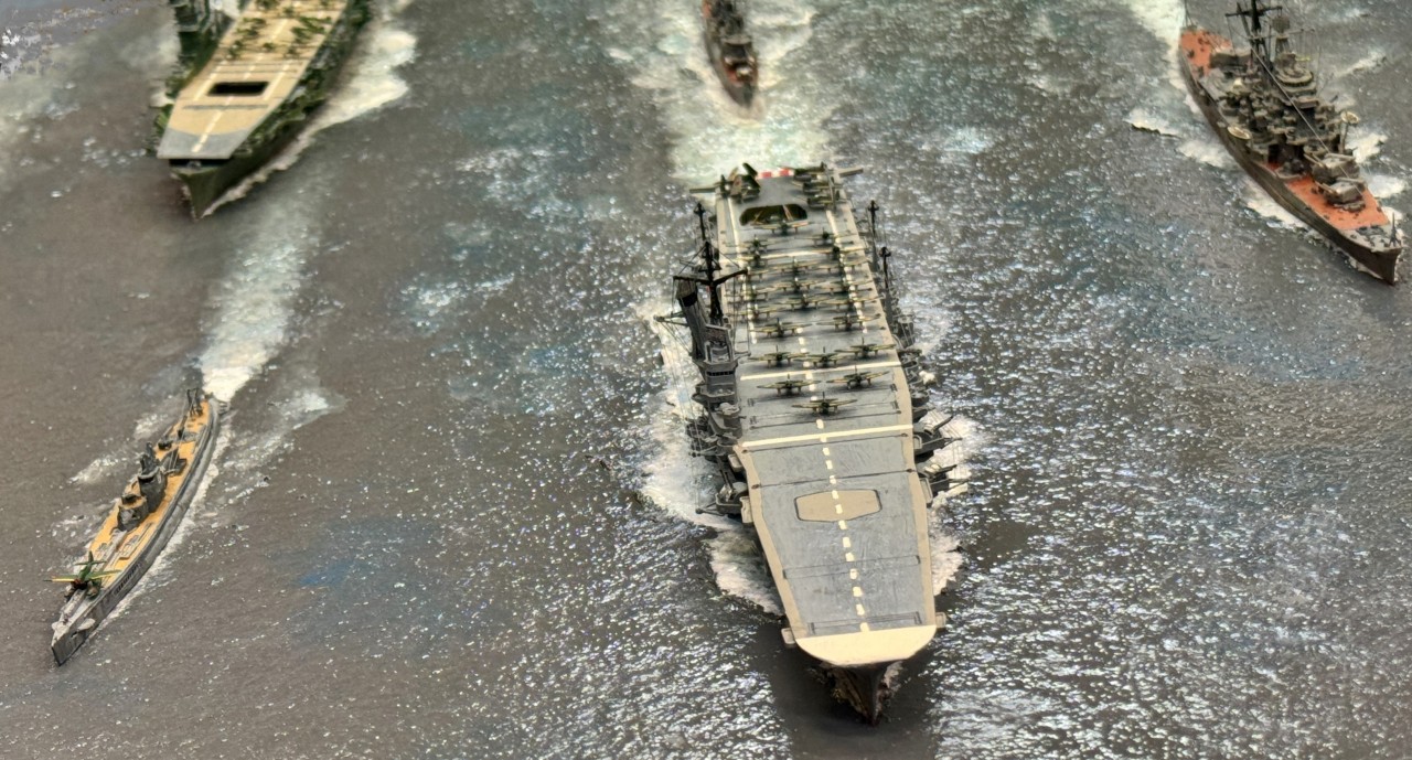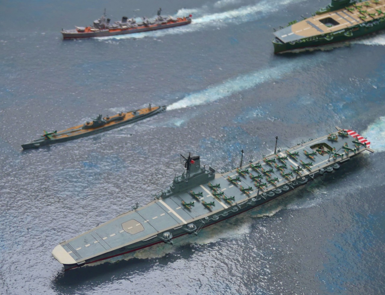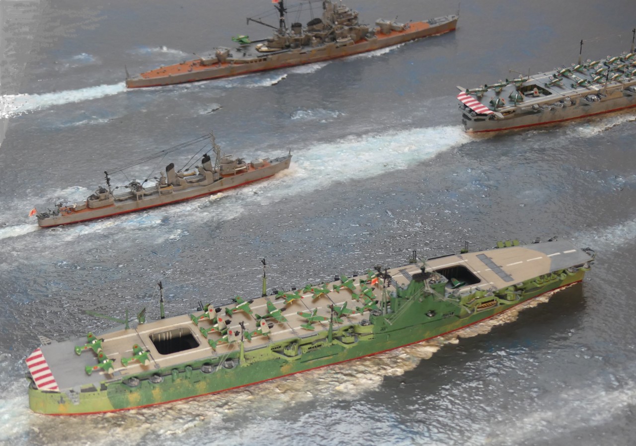 Als ich also überlegte, ob ich die Modelle verkaufen sollte, kam mir die Idee, sie zu bauen und als eine „what if“-Trägerkampfgruppe, versetzt ins Frühjahr/Sommer 1945, in einem kleinen Diorama zu präsentieren.