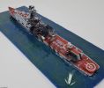 - den Bildern nach hatte sich das Feuer von der Trefferstelle nach hinten gefressen und endete kurz hinter dem linken SA-N-4-Werfer. Auf den Bildern so nicht ersichtlich hier aber strukturelle Schäden und Zerstörung des Werfers und seines Radars modelliert, um das Modell etwas dramatischer zu gestalten