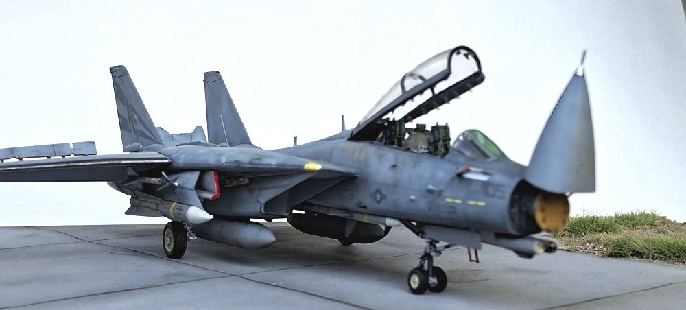 Das Modell der F-14D Tomcat wurde aus dem Bausatz von Great Wall Hobby gebaut. Der Bausatz an sich mag nicht billig sein aber aus meiner Sicht ist er sein Geld wert. Er ist sehr detailliert, sehr passgenau und es gibt viele Optionen. Es wurde ein Aires-Cockpit inklusive Sitzen verbaut, alles weitere ist direkt aus dem Kasten gebaut bzw. das Radar wurde mit etwas Plastikfaden verfeinert. Das Aires-Cockpit habe ich verbaut, weil ich es da hatte - eigentlich hätte ein Eduard-Set genügt, ok Sitze gehen immer.