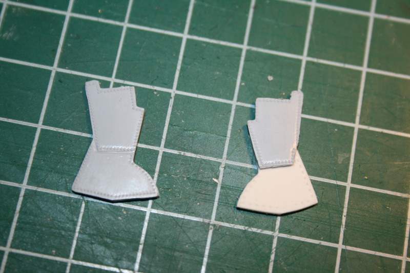 Die Kanonen wurden durch Kanülen ersetzt, die mit einem Feuerzeug durch ausglühen schwarz angelassen wurden. Die Fahrwerksklappen waren zusammen gegossen, weshalb ich den unteren Abschnitt abgesägt und mit Sheetmaterial ersetzt habe.