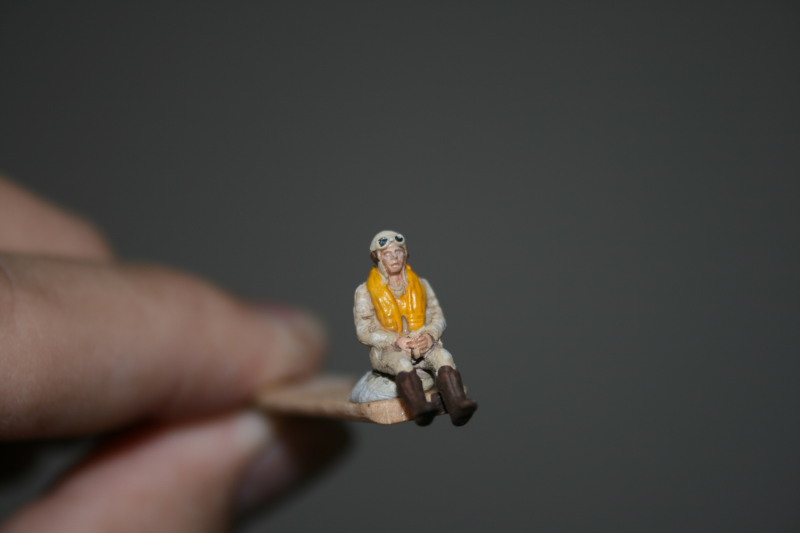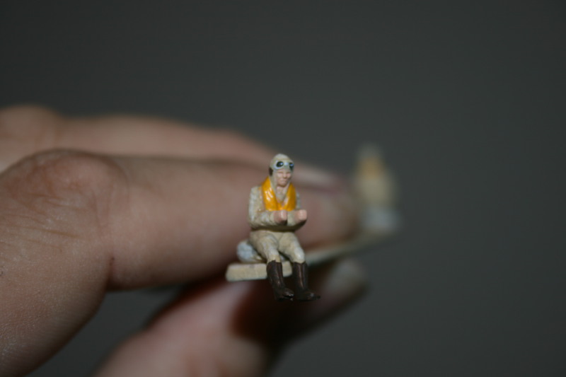 Tatsächlich habe ich den "Flieger" mit leicht schwarz pigmentierten Bodenglänzer noch mal farblich angepasst. Außerdem mit matten Blau und Weiß Alterungseffekte erzeugt.
