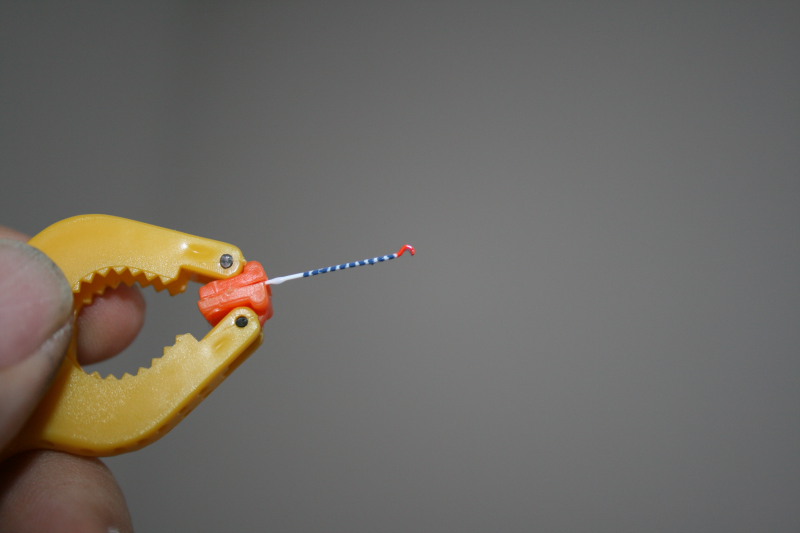 Der originale Fanghaken war viel zu dick und unförmig. Aus Gussast hab ich den "geschnitzt".