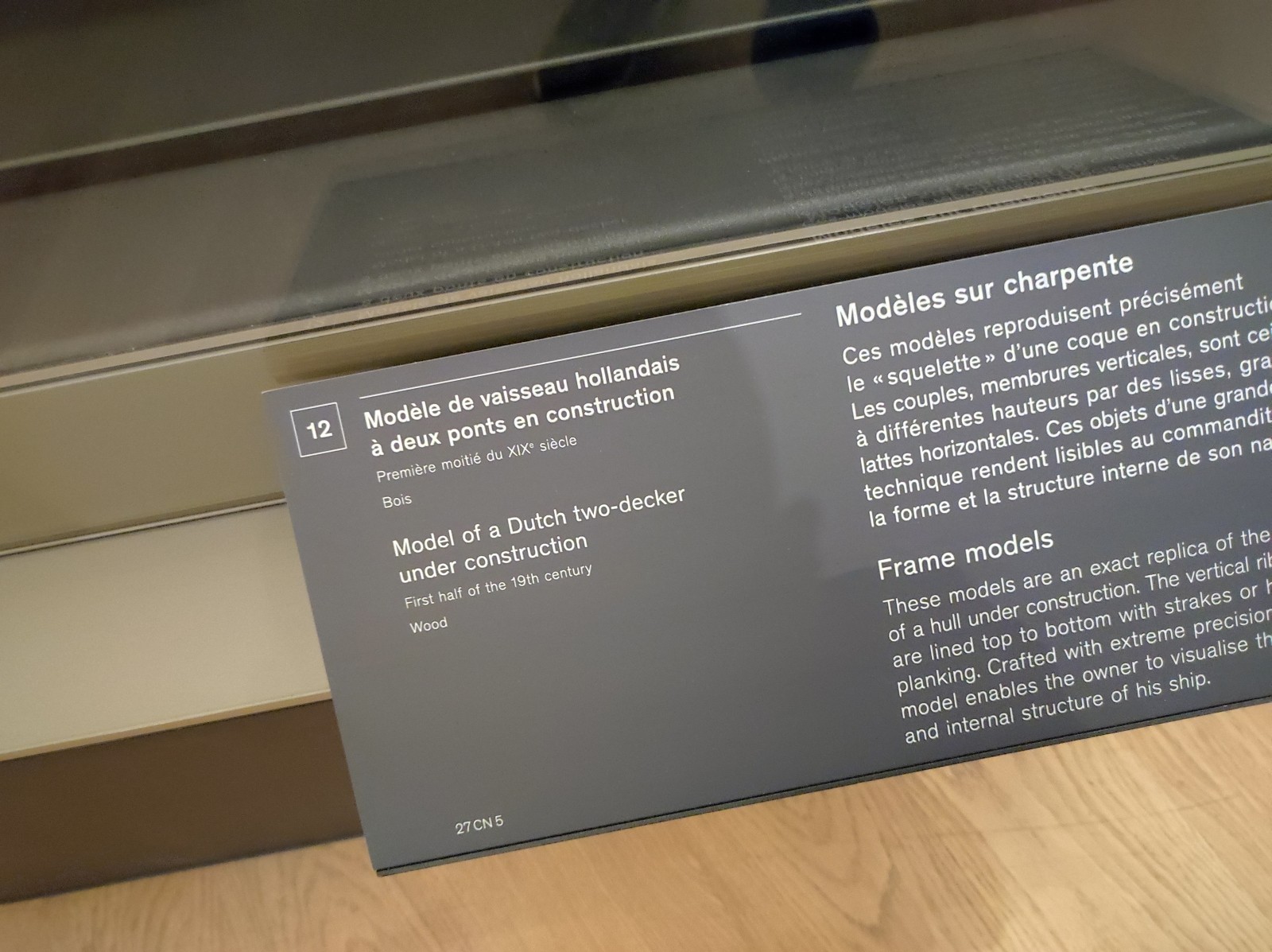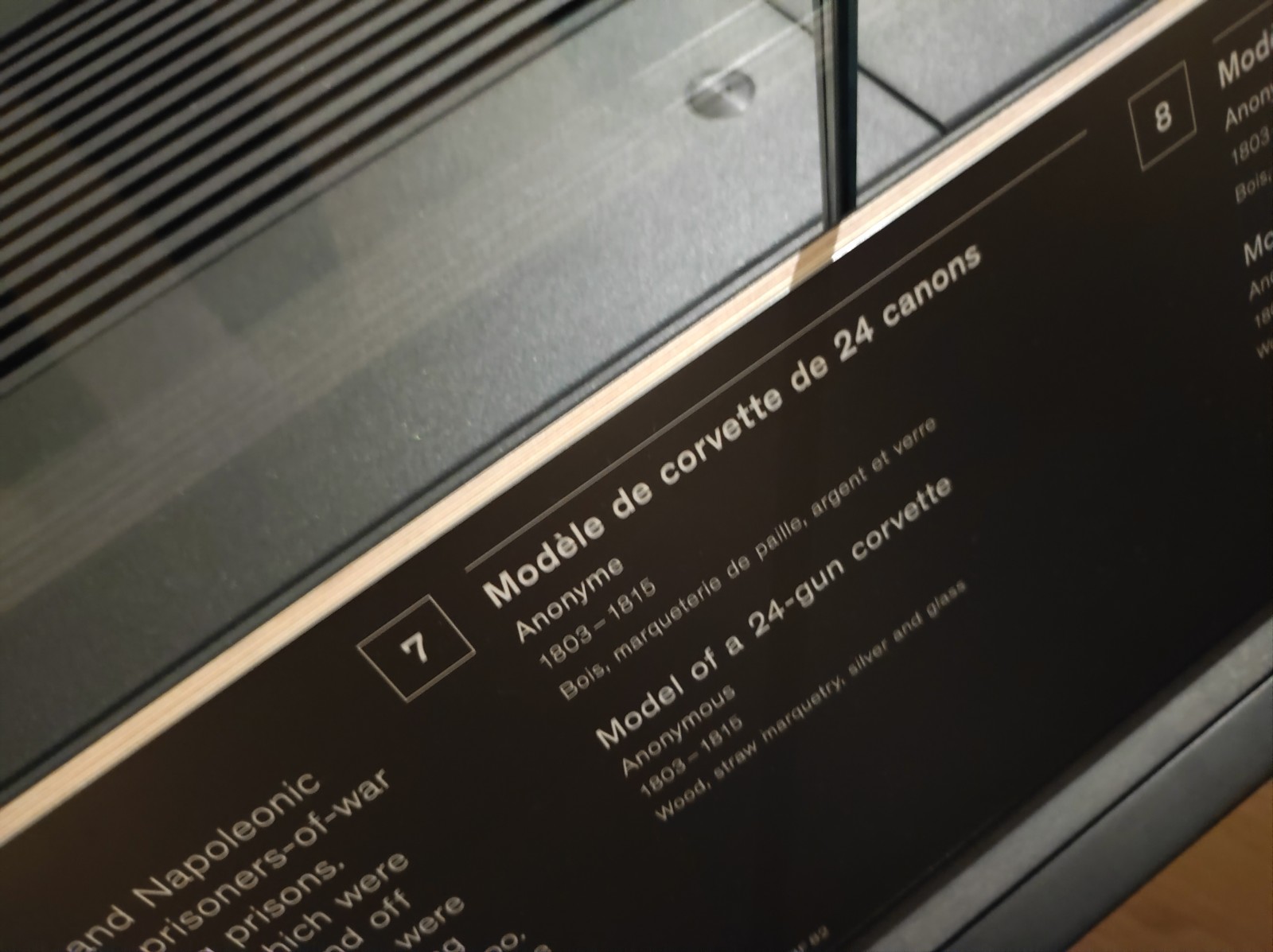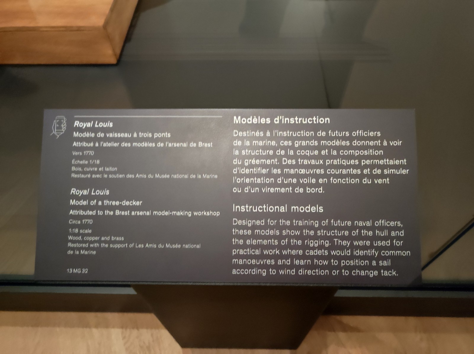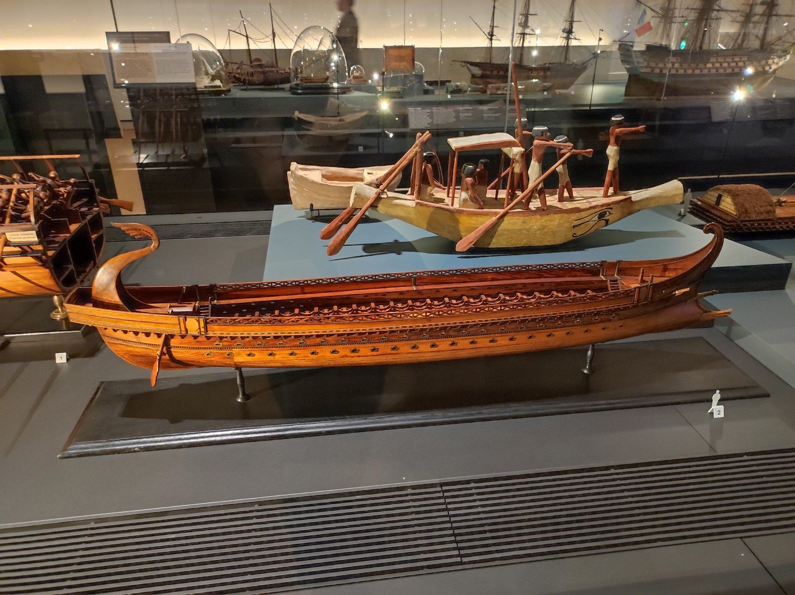 Gegenüber vom Eiffelturm, auf der andere Seite der Seine im Palais de Chaillot, ist das Musée national de la Marine de Paris untergebracht - der Hauptstandort der französischen Marinemuseen (die anderen Standorte sind Brest, Port-Louis, Rochefort und Toulon). Das Museum wurde 1827 gegründet und ist seit 1943 am heutigen Standort untergebracht. Das Museum wurde 2017-23 renoviert. Das Museum beherbergt immer noch eine große Sammlung von Schiffsmodellen, auch wenn diese früher größer war. In diesem Teil sind überwiegend Modelle von Segelkriegsschiffen sowie einige kleinere Modelle von Schiffen und Booten verschiedener Epochen zu sehen.