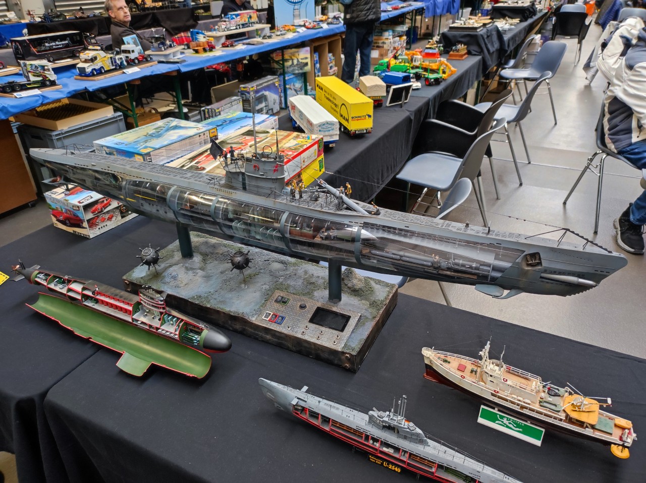 Die Vielfalt der Schiffsmodelle auf der Euro Model Expo Evolution am 28. und 29. März 2026 in Lingen reichte von Modellen im Maßstab 1/700 und 1/350, zahlreichen U-Booten und Eggships über viele Dioramen (auch in 1/72 und 1/35) bis hin aus Holz gebauten Modellen von Segelschiffen: