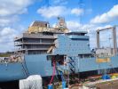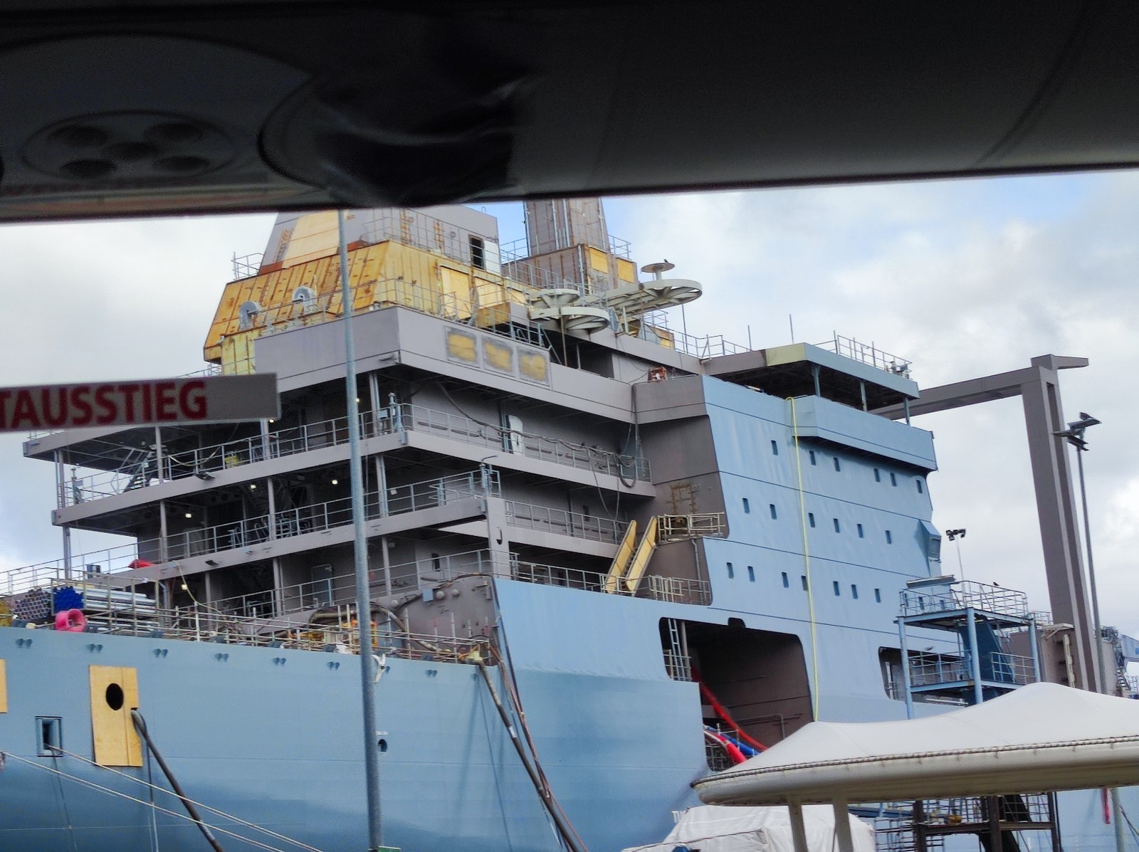 Das erste Schiff (A 1442) fotografierte ich im September 2024 auf der Warnow Werft (Marinearsenal) in Rostock (eventuell der Teil, der an die Meyer Werft verpachtet ist?) - damals war von dem Schiff nicht viel zu sehen, da es gerade lackiert wurde:
