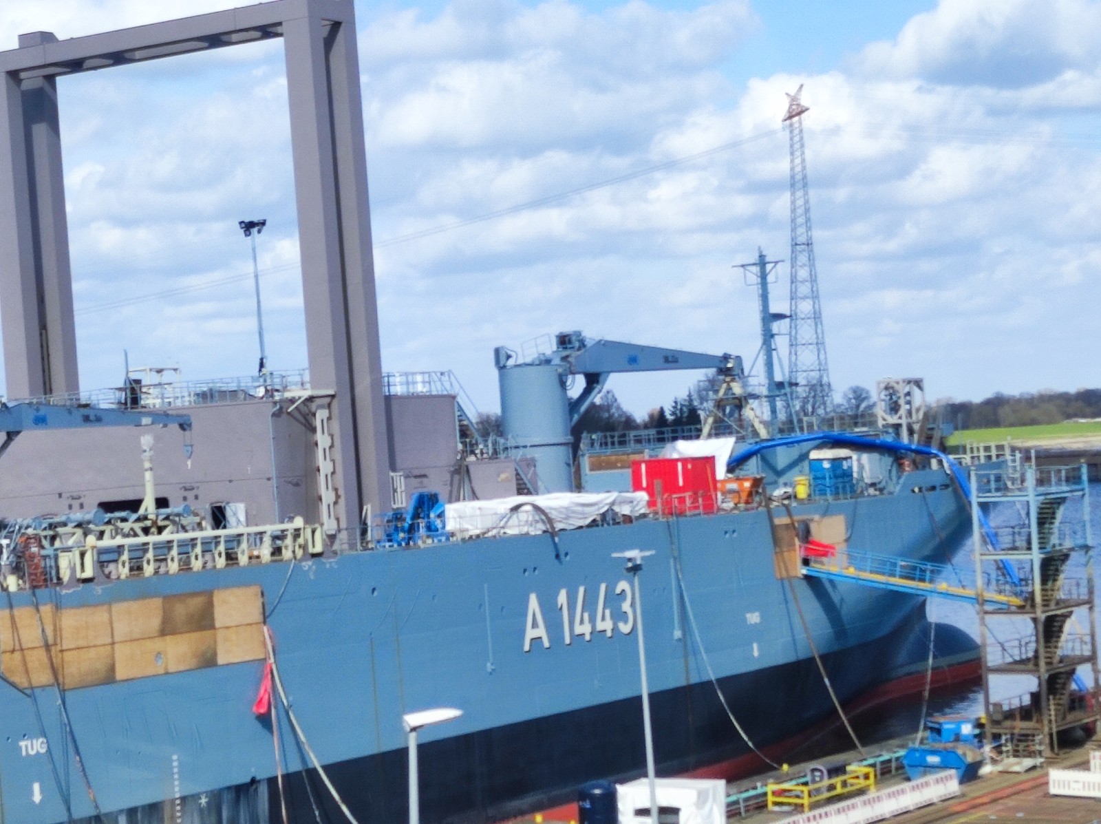 Das zweite Schiff (A 1443) fotografierte ich im März 2026 auf der Meyer Werft in Papenburg: