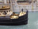 Die beiden Schlepper, die beim Einholen der Schleppleinen in Erwartung des Abwurfs der Festmacherleine dargestellt sind, wurden nach Plänen und Fotos selbst gebaut und bestehen aus holzgeschnitzten Rümpfen, Styrolschanzkleidern, Messing und sogar "Butterpapier". Beide Schlepper waren an sich schon beachtliche Forschungs- und Bauprojekte. Der Bau der beiden sehr unterschiedlichen Schlepper wird hier auf Modelwarships im Detail beschrieben.