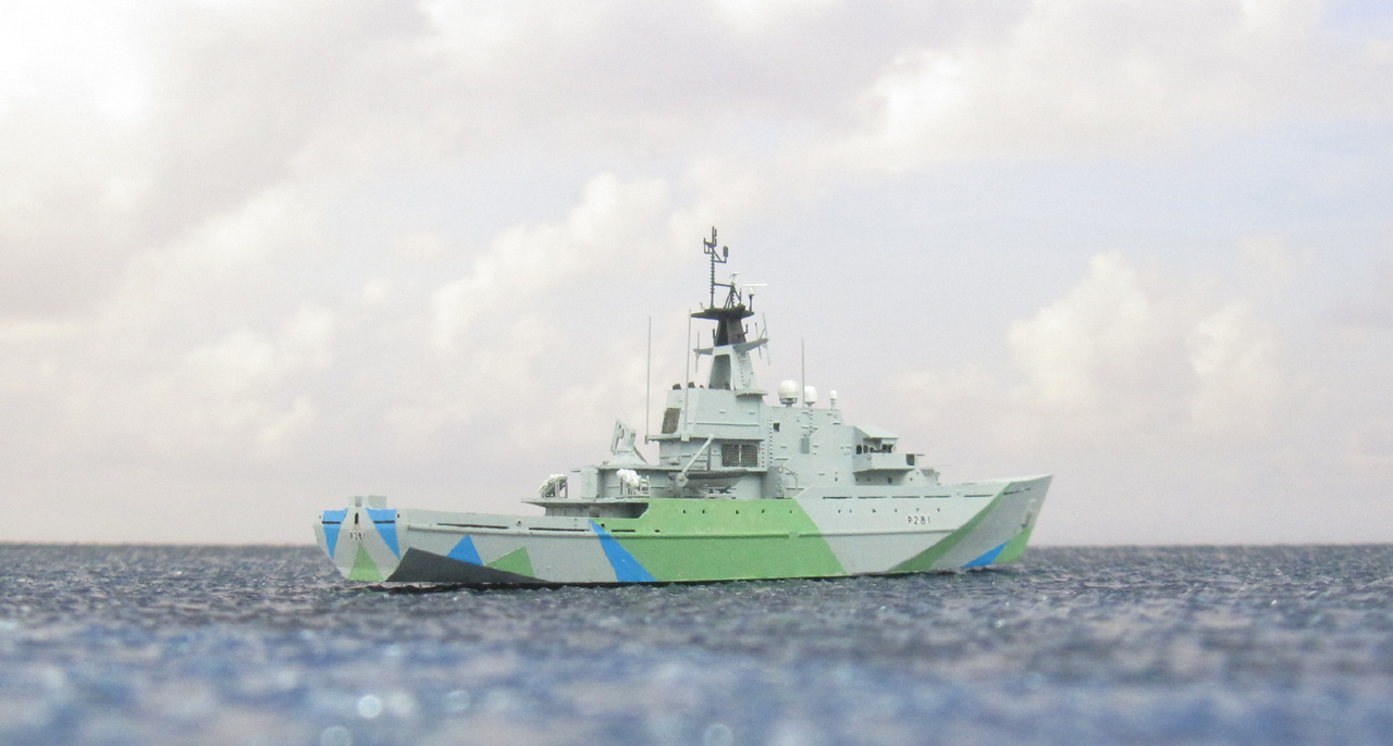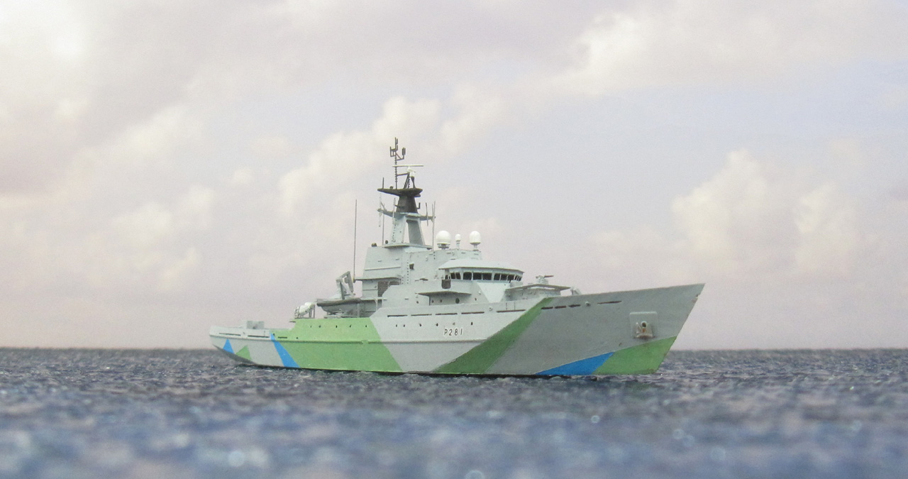 Das britische Patrouillenschiff HMS Tyne habe ich aus dem Bausatz von EVModel (siehe Bausatzbesprechung) gebaut. Das Modell soll den Bauzustand von 2023 darstellen.
