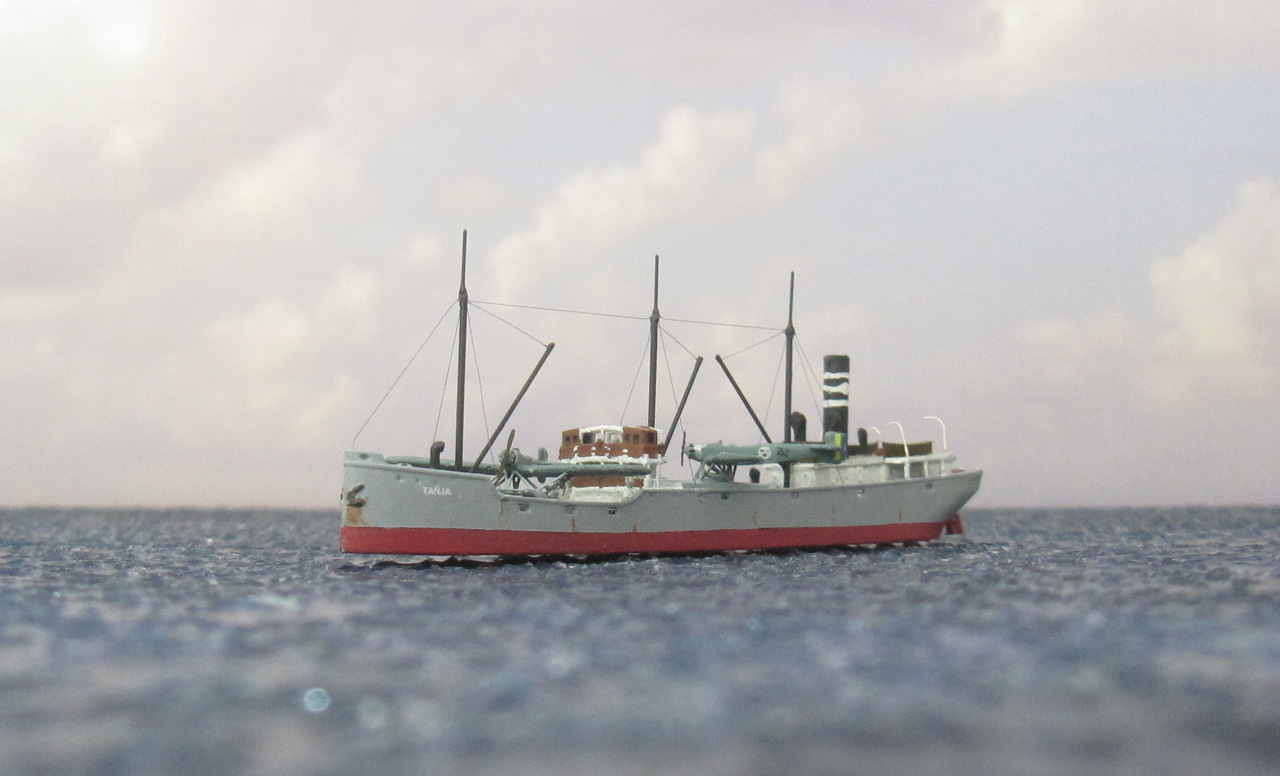 Das Modell des schwedischen Frachters Tanja im Bauzustand von 1928, während der Suche nach der Italia-Expedition, baute ich aus dem 3D-gedruckten Modell von Brown Water Navy Miniatures. Jens Bartels druckte mir das Modell, genauso die beiden von SNAFU konstruierten Heinkel HE 5 (vielen Dank hierfür!). Das gedruckte Modell der Tanja ist schon relativ gut detailliert.