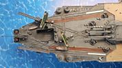 Auf dem Flugzeugdeck achtern sind Schienen zum Transport der Flugzeuge anzubringen. Um den Bau zu vereinfachen wurden diese auf das einzelne Deck mit Sekundenkleber verklebt. Die Schienen sind ziemlich starr und das Plastikdeck ist verformbar. Das führt zum Bruch der Verklebungen. Um das zu verhindern wurde das Deck mit dem Rumpf verleimt, noch bevor das Hauptdeck angebracht wurde. Anschließend sind die Schienen erneut zu fixieren.