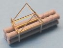 Das Diorama war zunächst vorzubereiten. Da das Schiff „schwimmen“ soll, wurde es an zwei Schnüren am Regal oben befestigt. Das Lineal zeigte die „Wassertiefe“ an. Die Bartenwale waren noch zu positionieren.