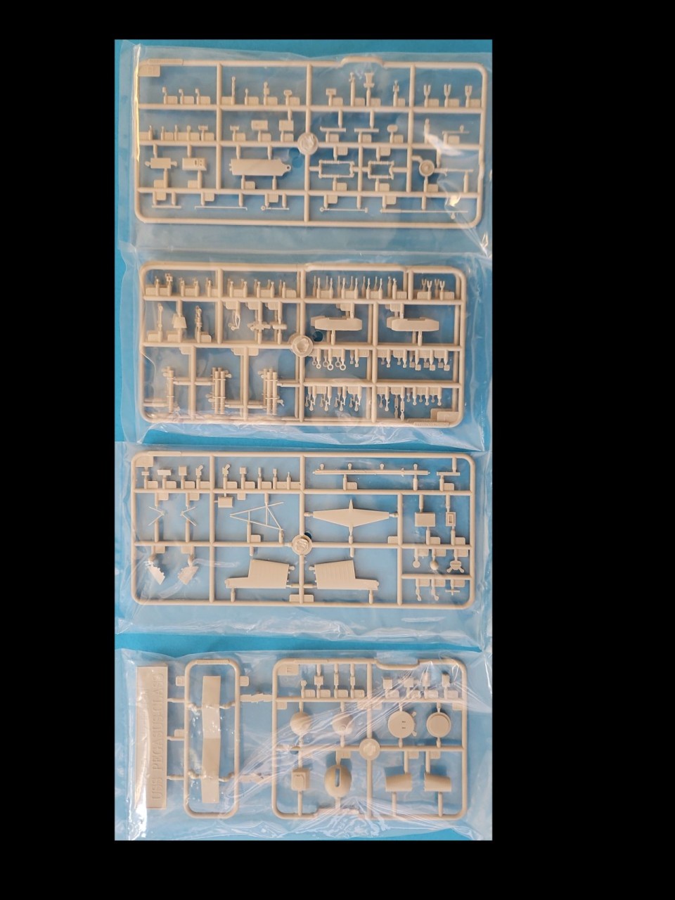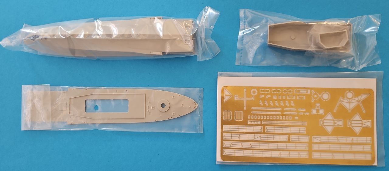 Der Bausatz von Hobby Boss besteht aus sechs Gussästen plus Bootsrumpf, Deck und zwei Teilen der Aufbauten. Zusätzlich gibt es einen Ätzteilesatz und Decals für die verschiedenen Boote. Die Bauanleitung führt in 18 Schritten zum Ziel. Die Passgenauigkeit ist gut.
