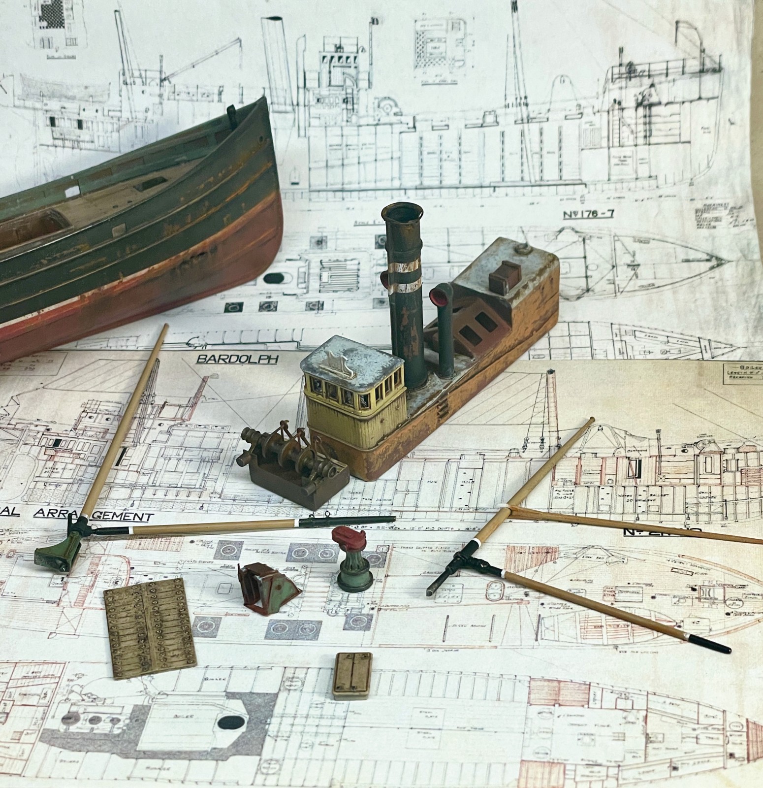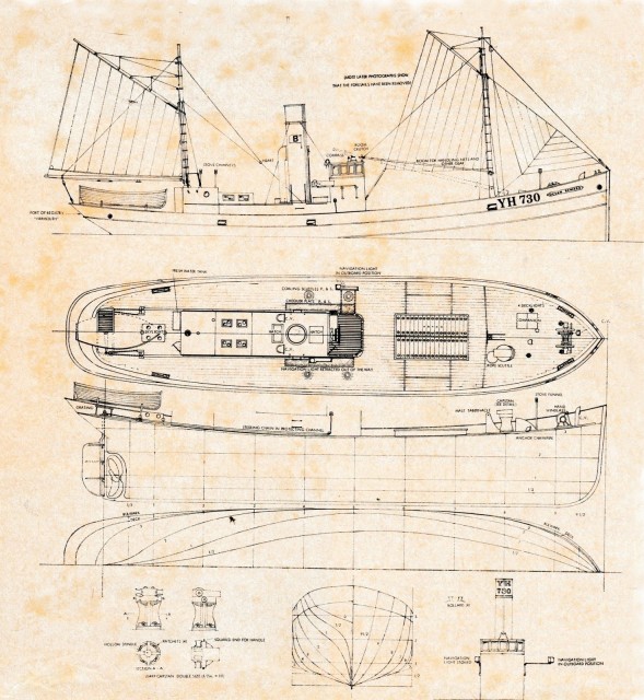 Bei diesen Booten handelt es sich um eine mehr oder weniger standardisierte Typ von Fischkuttern. In unzähligen Varianten befuhren sie die See. Ein einfacher aber unglaublich gebrauchsfähiger Schiffstyp. Zur Recherche trieb ich mich wie üblich im Internet herum, hatte ich doch zunächst keinerlei Ahnung von dem wirklichen Aussehen meines Modells. Eine Unzahl von Fotos, die mir da entgegen schwappte, verwirrte mich zunächst mehr, als das es mir Klarheit gab. Eine Vielzahl von Zeichnungen und Plänen halfen mir dann letztlich das Schiff konstruktiv zu verstehen. Eine sehr gut gestaltete Website fesselte mich letztlich ganz und gar: „The Cellardyke Trust“. Hier erfährt man unglaublich viel über die Fischerei und die Boote. Jetzt, beim Schreiben, wollte ich um Fotos für den Artikel bitten und erhielt eine sehr nette aber ablehnende Antwort. Auch würde ich mit äußerster britischer Höflichkeit, in Komplimenten wohlgefällig eingepackt, darauf hingewiesen, dass mein Modell nicht akkurat sei. Einige Details würden nicht dieser Klasse entsprechen.