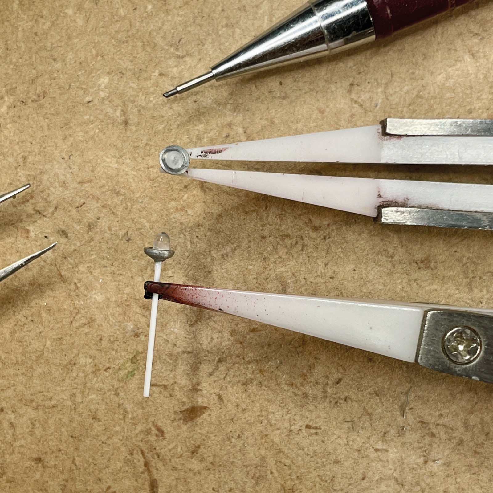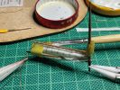 Habe ich bei den grundlegenden Farben der für mich neue Welt des Vallejo-Farbenspektrums verwendet, so bin ich für die Details, trotz aller erfolgsversprechender Vorlagen zu den mir vertrauten Ölfarben zurückgekehrt. Mit diesem Medien fühle ich mich sicher und die langjährige Erfahrung gibt mir die Courage auch zu neuen Ufern aufzubrechen. Ich brauche da keine Palette von vielfältigsten Rosttönen oder Washings. Eine relativ kleine Palette an Ölfarben reicht mir völlig. Vielleicht auch nur weil mir der Umgang mit ihnen vertraut ist und ich weiß wie sie reagieren.