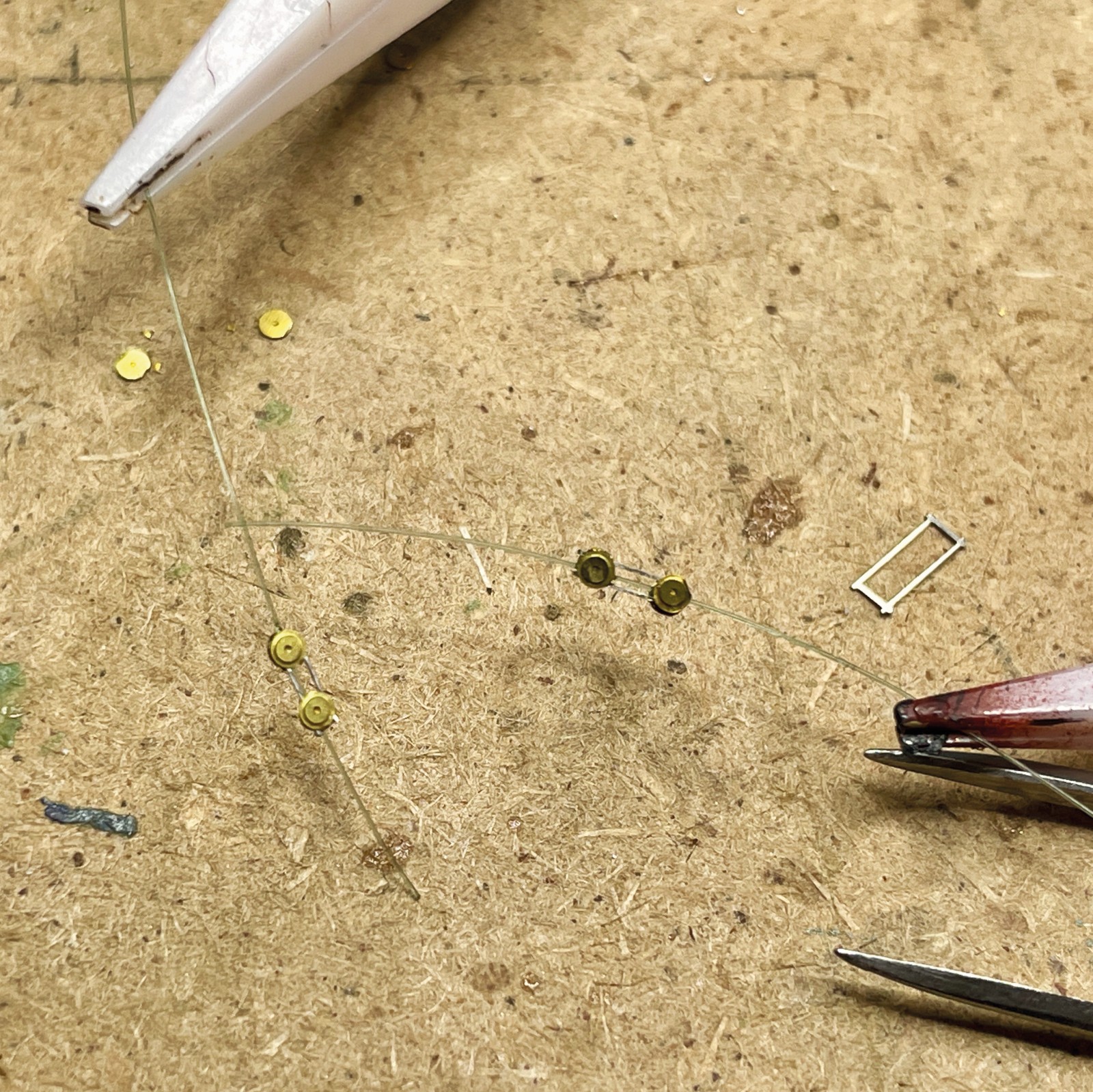 Auf bzw. an einem Schiff besonders an einem Fischkutter gibt es eine Unzahl unterschiedlichster Gebrauchsgegenstände und technischer Einrichtungen. Texturen und Materialien in Hülle und Fülle, wie Metall, Holz, Stoff, Glas und Tauwerk unterschiedlichster Ausprägungen erfordern eine realistische Umsetzung „en miniature“. Da gibt es Positionslichter in grün und rot, Signallampen am Mast und Leuchten, die das Deck beleuchten, um ein Arbeiten in der Nacht zu ermöglichen, letztere habe ich ein wenig ausführlicher dargestellt.