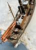 Einen Grund musste es ja geben warum dieses Schiff auf Land gesetzt und vergessen wurde. Ich entschied mich für ein veritables Leck als Begründung. Ein Riss rechts vorne, knapp unter der Wasserlinie verursacht bei einem Sturm an einem Felsen. Ob Unglück oder Unachtsamkeit es spielt keine Rolle. Man war froh gerade noch an Land gekommen zu sein. Das Schiff wurde sich selbst überlassen. Zu aufwändig oder teuer wäre eine Bergung gewesen.
