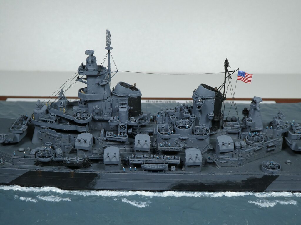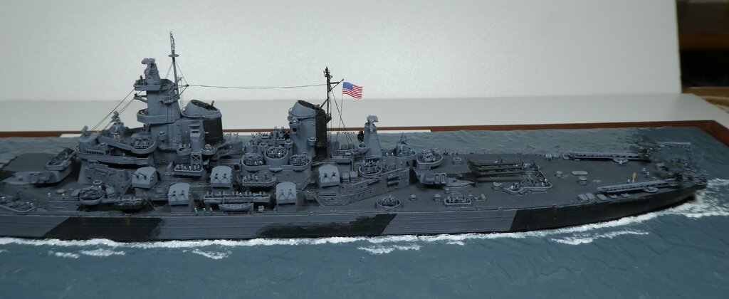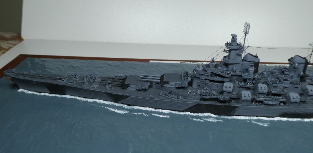 Das Modell stellt das amerikanische Schlachtschiff USS Iowa im Bauzustand Anfang 1944 dar.