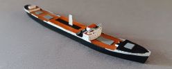 Ich finde, das Schiff hat den Begriff „Pott" mehr als verdient. Der Dampfer spiegelt das Schiffsdesign der 1930er als Inseltyp eindrucksvoll wider. Der riesige Schornstein dominiert dabei das Bild. Das Modell war aufwändiger als gedacht. Es gab viele Lüfter, Luken, Oberlichter und Winden zu machen. Auch das Brückenhaus vorn mit den vielen Decks war nicht ohne.