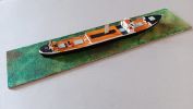 Die Wasserfläche habe ich aus Aquarellpapier gemacht. Die Umrisse des Schiffes sind daraus ausgeschnitten, bevor ich es auf Graupappe klebte. Dann kamen Aquarellfarbe und Acrylgel ins Spiel.