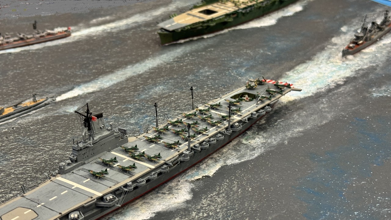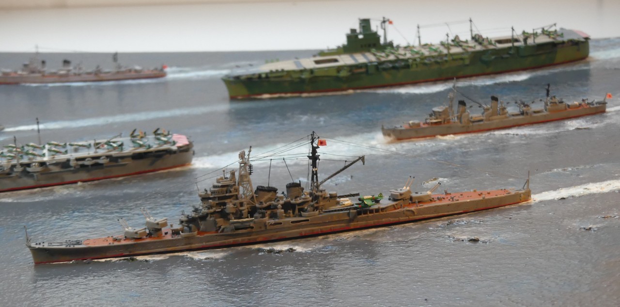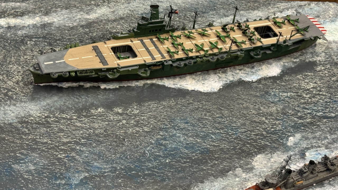 Als ich also überlegte, ob ich die Modelle verkaufen sollte, kam mir die Idee, sie zu bauen und als eine „what if“-Trägerkampfgruppe, versetzt ins Frühjahr/Sommer 1945, in einem kleinen Diorama zu präsentieren.