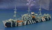 Besonders attraktiv für Modellbauer ist die Minerva aber durch ihre verschiedenen Tarnanstriche. Erst als Weißer Hai, dann mit Schachbrettmuster (Bilder zu beiden auf dem Forum Marinearchiv, ggf. muss man sich anmelden) und schließlich wie im Modell dargestellt.