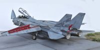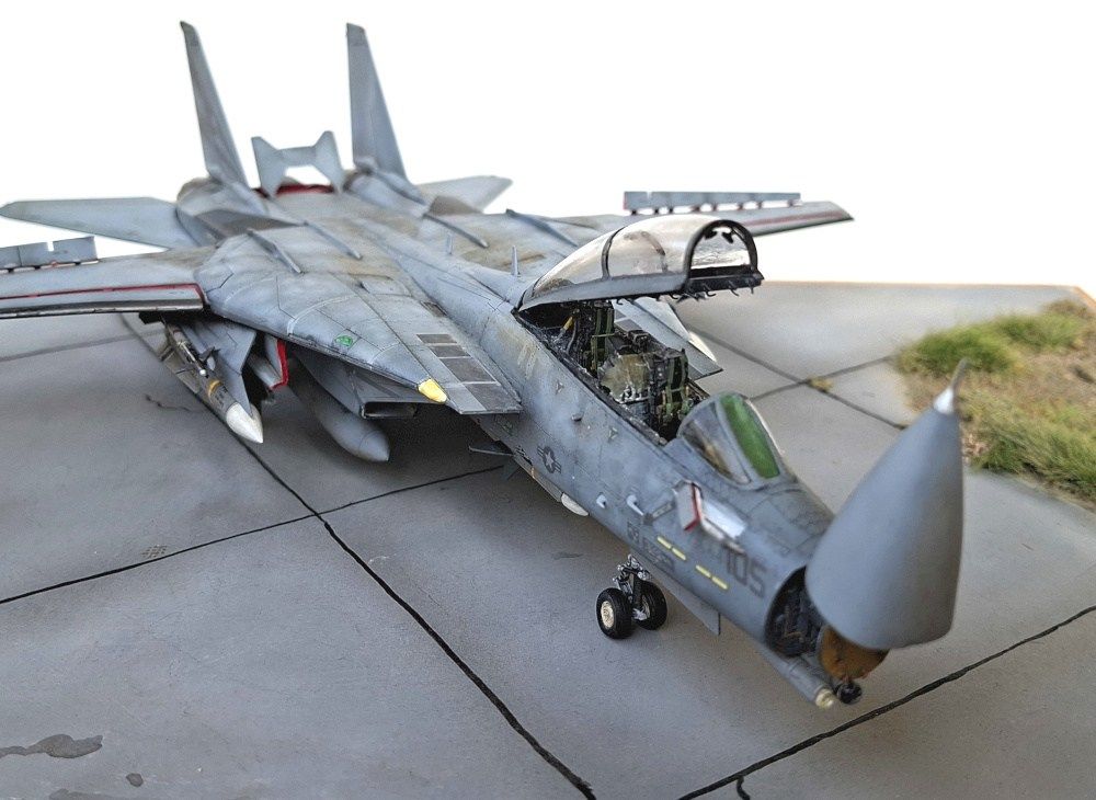 Das Modell der F-14D Tomcat wurde aus dem Bausatz von Great Wall Hobby gebaut. Der Bausatz an sich mag nicht billig sein aber aus meiner Sicht ist er sein Geld wert. Er ist sehr detailliert, sehr passgenau und es gibt viele Optionen. Es wurde ein Aires-Cockpit inklusive Sitzen verbaut, alles weitere ist direkt aus dem Kasten gebaut bzw. das Radar wurde mit etwas Plastikfaden verfeinert. Das Aires-Cockpit habe ich verbaut, weil ich es da hatte - eigentlich hätte ein Eduard-Set genügt, ok Sitze gehen immer.