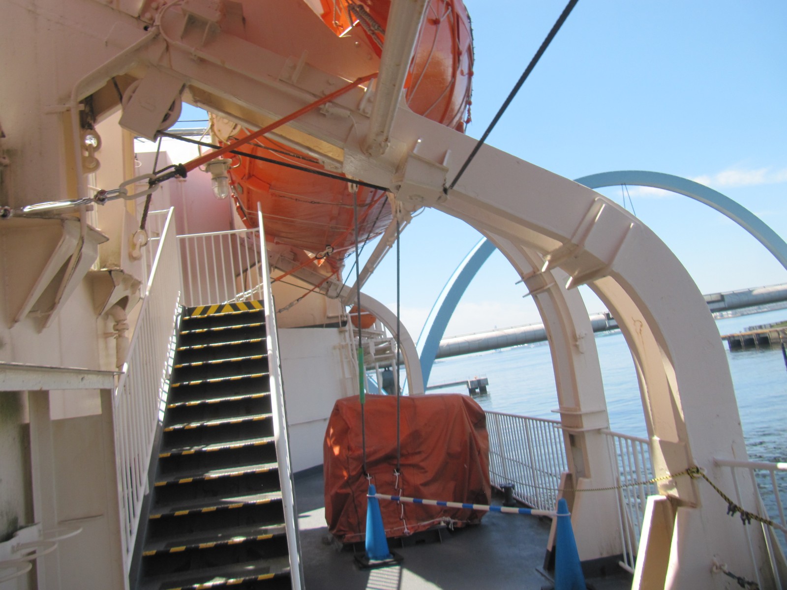 Auf der Fuji und neben der Fuji waren zwei Schneemobile zu sehen, die mit der Fuji in die Antarktis bzw. aus der Antarktis transportiert und dort bei der Forschungsstation Showa eingesetzt worden waren - ein Komatsu KC20-3S von 1956 und ein Ohara SM50S von 1979: