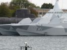 Dänische Minenabwehrdrohnen MSF1 und Saltholm (MSD6), hinten dänische Fregatte Niels Juel und deutscher Tender Elbe