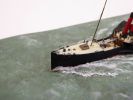 Eine vollständige Zusammenfassung des recht aufwendigen Bauprozesses kann hier nachgelesen werden; die Takelage besteht vollständig aus gezogenem Gussast – eine Schritt-für-Schritt-Anleitung dazu findet sich hier; die Wasserdarstellung erfolgte mit meiner üblichen Methode auf Aquarellpapier – eine entsprechende Schritt-für-Schritt-Beschreibung findet sich ebenfalls hier.