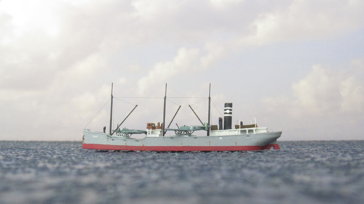 Das Modell des schwedischen Frachters Tanja im Bauzustand von 1928, während der Suche nach der Italia-Expedition, baute ich aus dem 3D-gedruckten Modell von Brown Water Navy Miniatures. Jens Bartels druckte mir das Modell, genauso die beiden von SNAFU konstruierten Heinkel HE 5 (vielen Dank hierfür!). Das gedruckte Modell der Tanja ist schon relativ gut detailliert.
