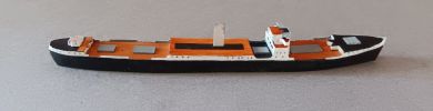 Ich finde, das Schiff hat den Begriff „Pott" mehr als verdient. Der Dampfer spiegelt das Schiffsdesign der 1930er als Inseltyp eindrucksvoll wider. Der riesige Schornstein dominiert dabei das Bild. Das Modell war aufwändiger als gedacht. Es gab viele Lüfter, Luken, Oberlichter und Winden zu machen. Auch das Brückenhaus vorn mit den vielen Decks war nicht ohne.