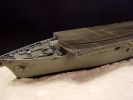 Der Bug des Schiffes musste komplett geändert werden. Dazu entfernte ich sämtliche Details inklusive des Ski Jump und baute alles aus 0,5 mm Plastikkarte neu auf. Den Ski Jump musste ich neu bauen, wobei ich lediglich den geschwungenen Teil der Bausatz-Startrampe verwenden konnte. Der Strahlabweiser und der Sea Dart-Starter wurden selbst gebaut, wozu ich Teile eines alten Motherboards, Kunststoffstückchen und Pillenkapseln verwendete.