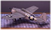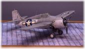 Das Modell der FM-1 Wildcat ist aus dem Bausatz von Hasegawa im Maßstab 1/72, der schon etwas älter ist, aus der Box gebaut. Lediglich dehnbares Garn als Antennendraht kam hinzu. Die Farben stammen von Mr. Hobby (Gunze), Tamiya und Revell. Die Alterung erfolgte nach altbewährtem Rezept: Washing mit verdünnter Ölfarbe und Einsatz von verschiedenen Pastellkreiden (Abgasfahnen, Kordithspuren an den Bordwaffen). Die Endversiegelung erfolgte mit mattem Klarlack von Revell.