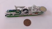 Das Modell wurde im Maßstab 1/1250 aus Polystyrolplatten und -stäben sowie Messingdraht unterschiedlicher Stärke gebaut. Die Krane wurden mit Fliegenbinderfaden in zwei verschiedenen Stärken verspannt, wie er beim Fliegenfischen verwendet wird.