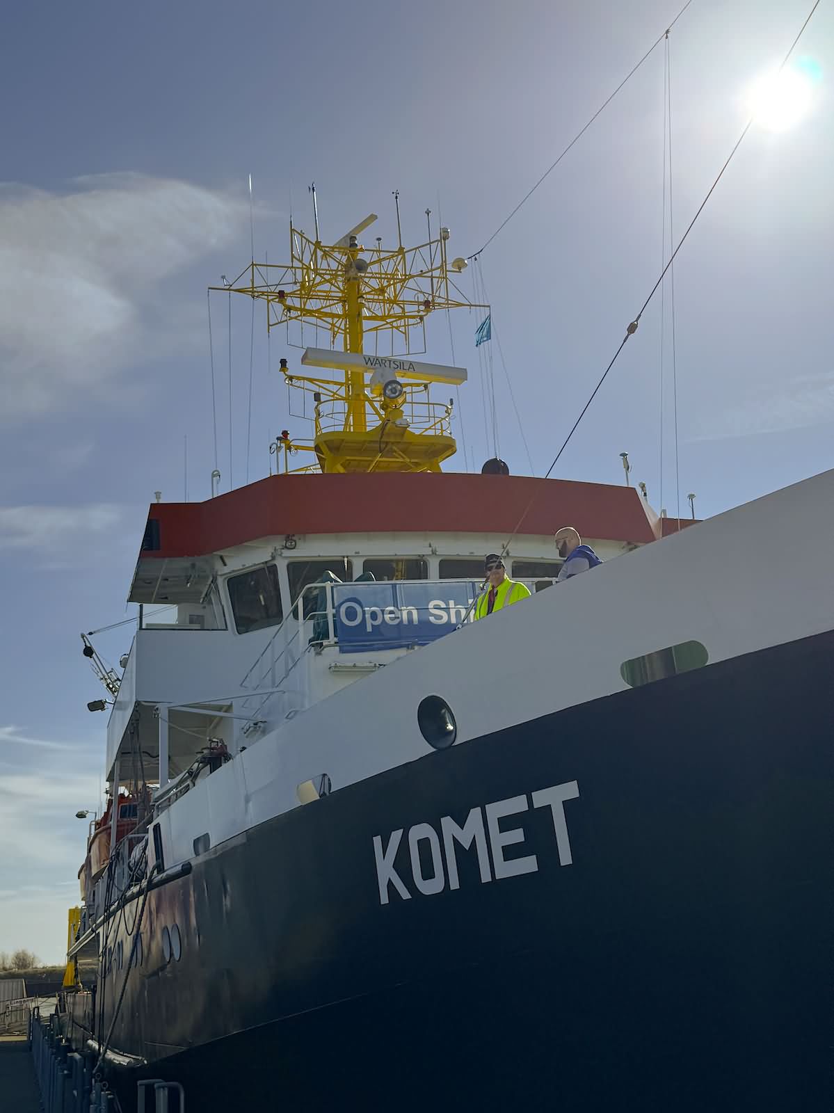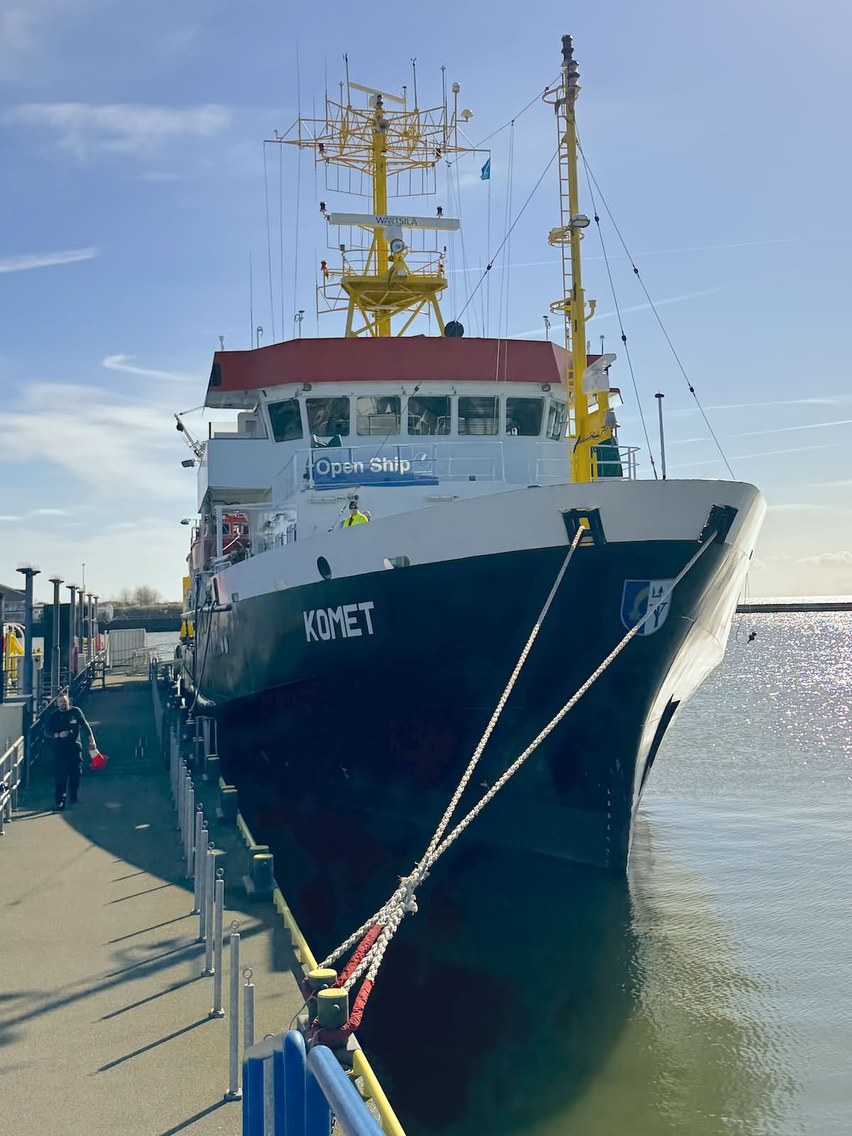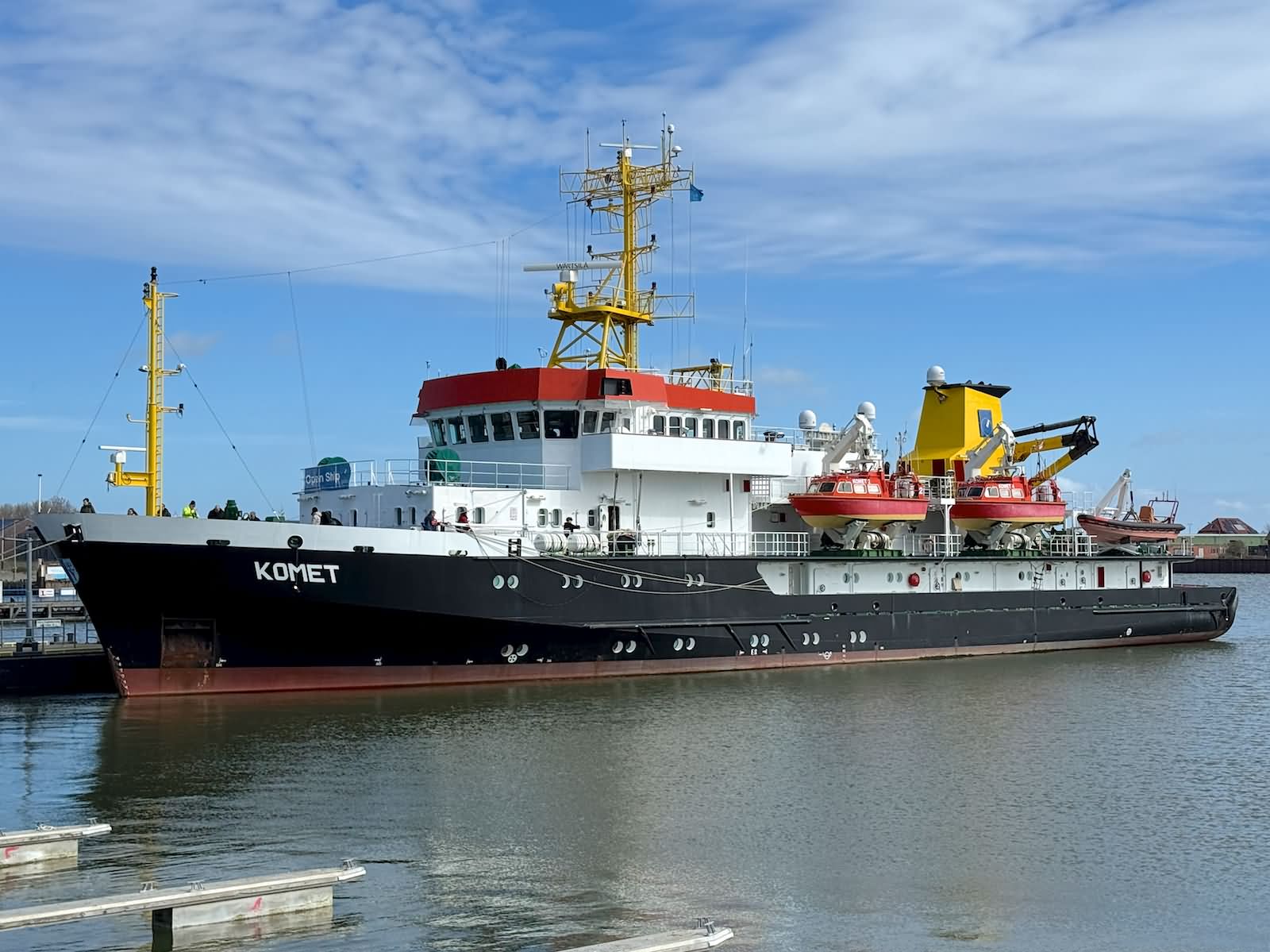 Komet konnte im April 2026 im Borkumer Hafen im Rahmen eines Open Schiffs besichtigt werden. Daneben lag der Seenotrettungskreuzer Hamburg und in der Nähe das Crew Transfer und Service Vessel (CTSV) Windea Three.