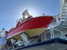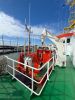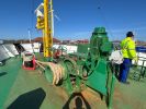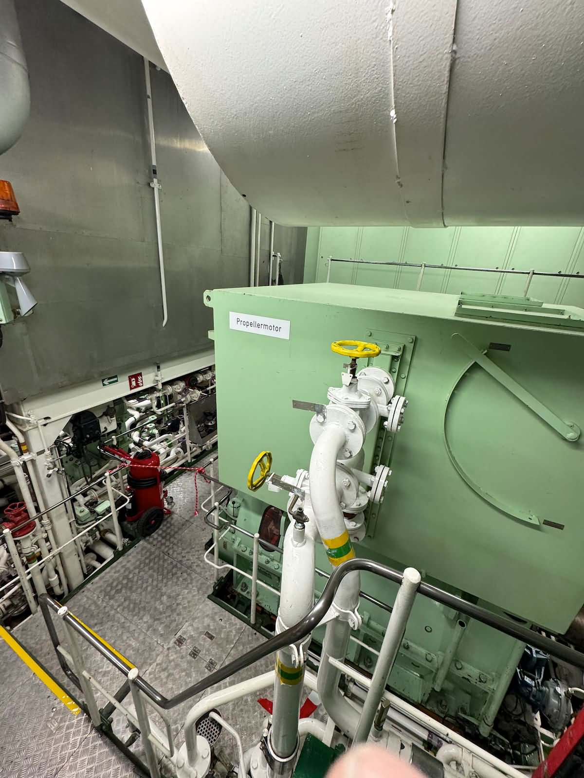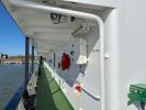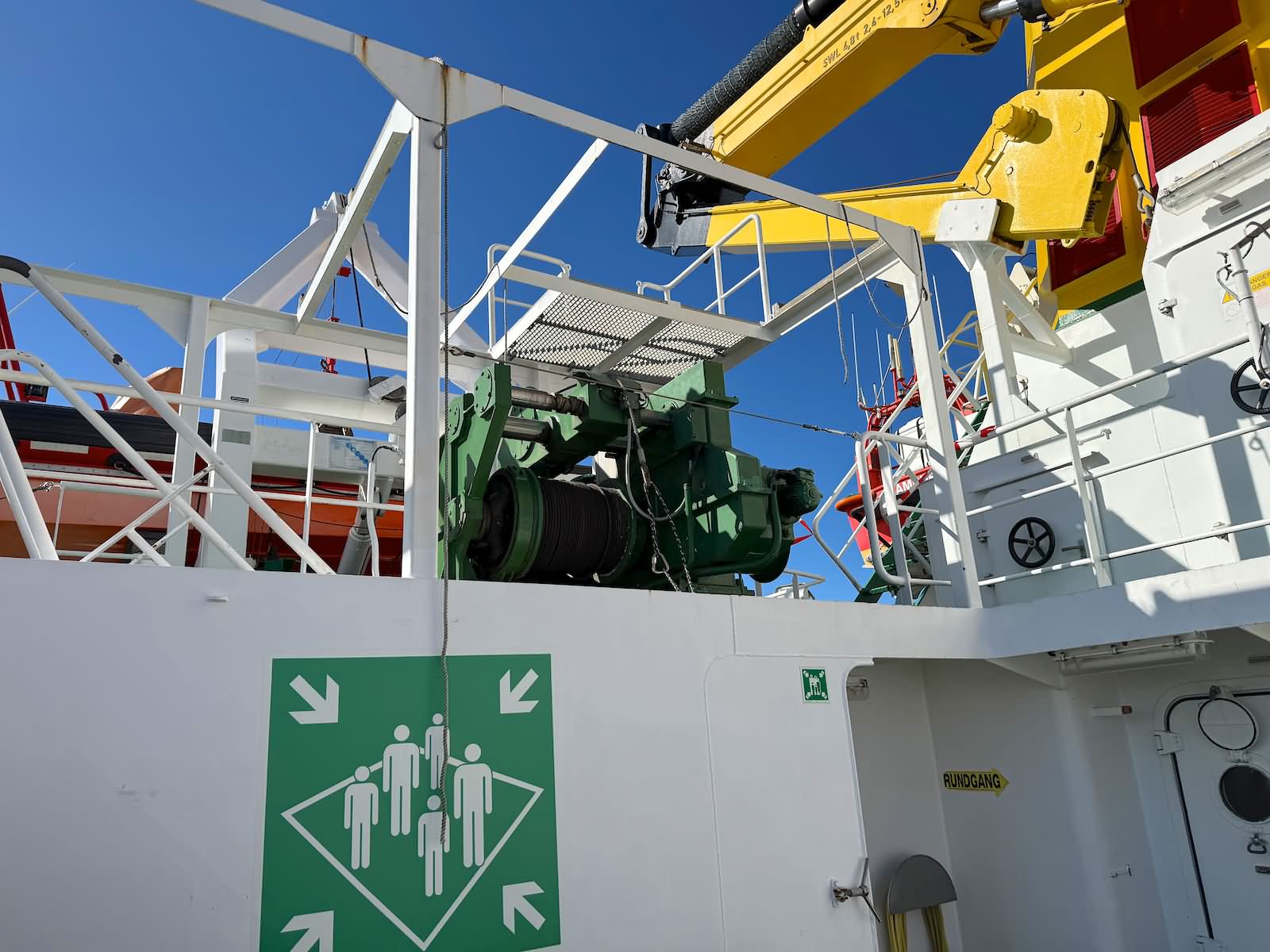 Der Rundgang beginnt mit einer Außenansicht des Schiffes, bei der die Vermessungsboote gut zu erkennen sind: jeweils zwei an Steuerbord und Backbord sowie ein Schlauchboot an der achteren Position auf der Backbordseite. Anschließend führt der Weg zum Achterschiff, wo sich die Mehrzweckkräne in schwerer und leichter Ausführung befinden, ebenso eine Mehrzweckwinsch, eine Luke zum Maschinenraum für die Dieselaggregate sowie die Anlage zur Müllkompression. Von dort geht es entlang des Gangs auf der Backbordseite weiter in den Innenbereich zur Werkstatt. Im Maschinenraum sind einer der drei Dieselgeneratoren zur Stromversorgung, verschiedene Pumpen und Kompressoren sowie der elektrische Fahrmotor zu sehen. Direkt anschließend befindet sich der Maschinenfahrstand. Weiter führt der Rundgang in die Messe, die mit den Bordwappen der Vermessungsschiffe geschmückt ist. Danach gelangt man auf das Oberdeck an Steuerbord, wo sich ein weiteres Vermessungsboot sowie der Steuerbordgang befinden. Im Vorschiff sind eine Luke zur Schottel-Anlage sowie eine Winsch untergebracht. Auf der Brücke befinden sich der Fahrstand und die Steuerung der Schottel-Anlage. Die Komet ist mit einem Schottel-Pumpjet im Vorschiff ausgestattet. Zudem ist der Rumpf so konstruiert, dass das Schiff trockenfallen kann. Im weiteren Verlauf werden Details der Vermessungsboote gezeigt, darunter Antennen, Kräne und weitere Ausrüstung. Auch das Schlauchboot auf der achteren Backbordseite wird näher betrachtet; es wird durch einen Waterjet angetrieben. Abschließend folgen Außenaufnahmen der Backbordseite. Ein Bild ist zwar unscharf, aber dennoch aufschlussreich: Auf Höhe der Brücke an Steuerbord befindet sich ein ausklappbarer Galgen, mit dem eine Unterwasserschallsonde ausgebracht werden kann. Diese wird bis zum Meeresboden abgelassen, um anhand der Laufzeiten durch unterschiedliche Dichteschichten eine Kalibrierung vorzunehmen, was letztlich die Genauigkeit der Messergebnisse verbessert.