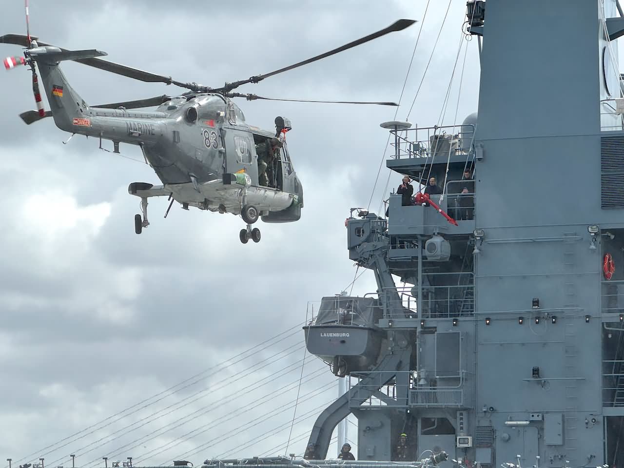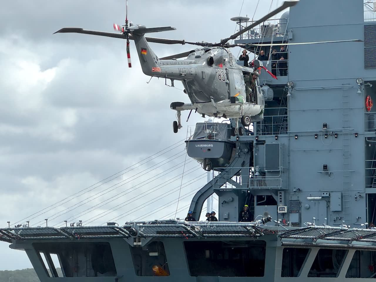Der Sea Lynx 83+07 nahm am 28. Juni am Tag der Bundeswehr in Stralsund bei und landete auf dem Tender Elbe (siehe Bildergalerie):